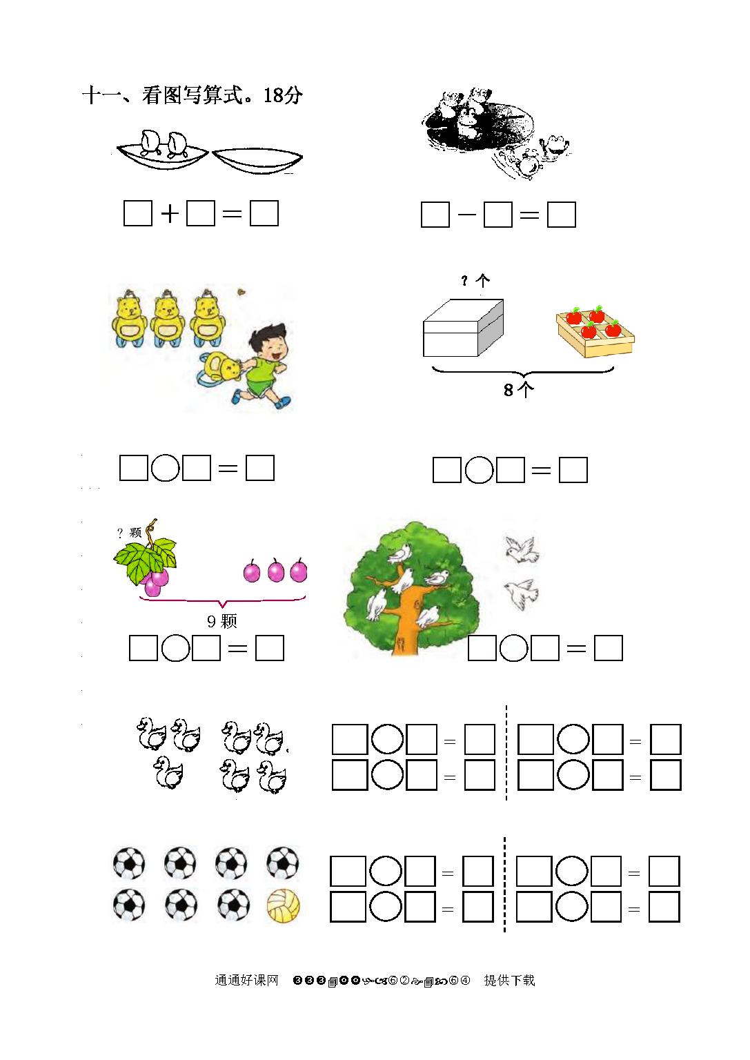 人教版一年级数学上学期期中竞赛试卷免费下载打印(附答案)