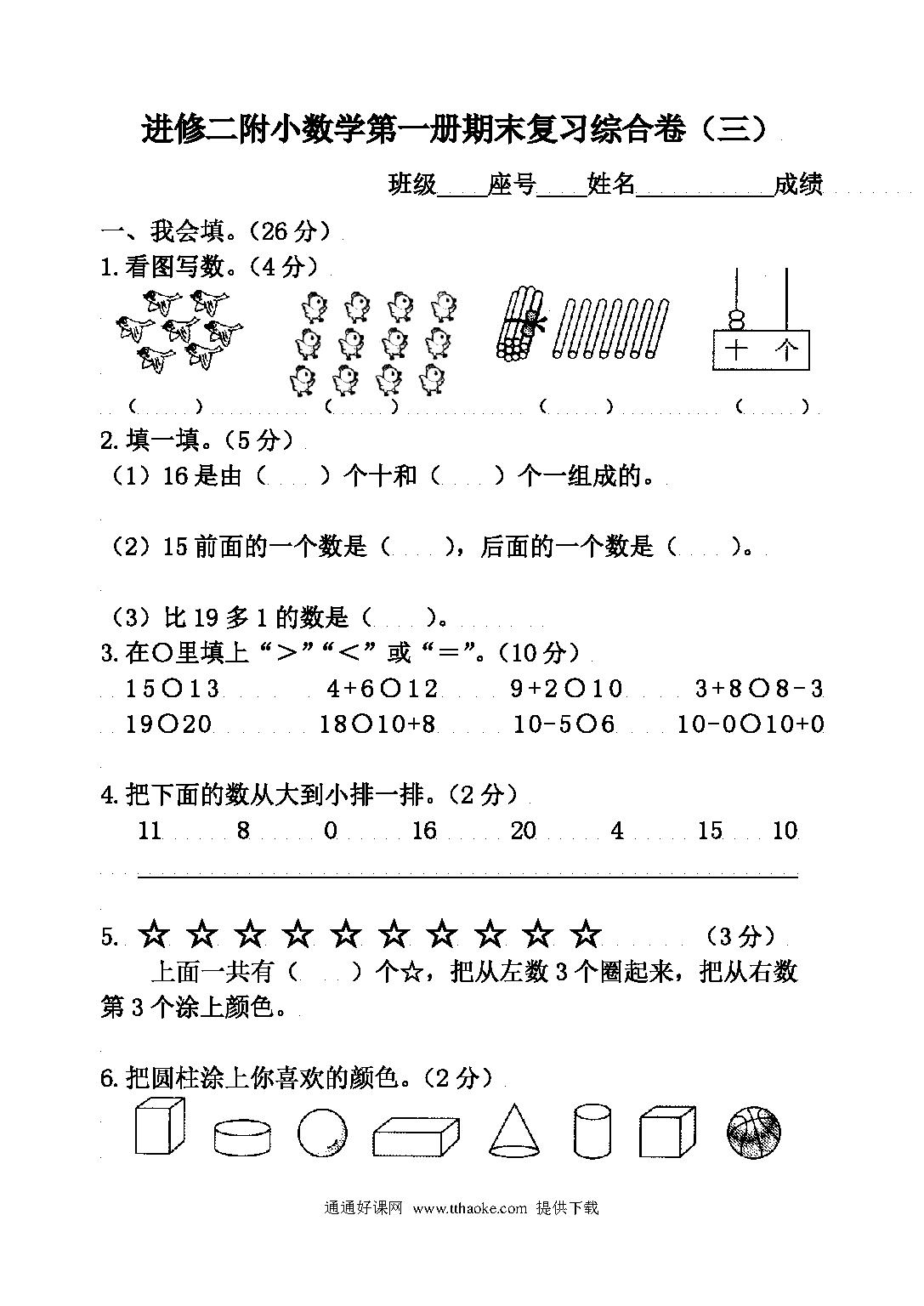 一年级上册数学期末复习卷(三).pdf