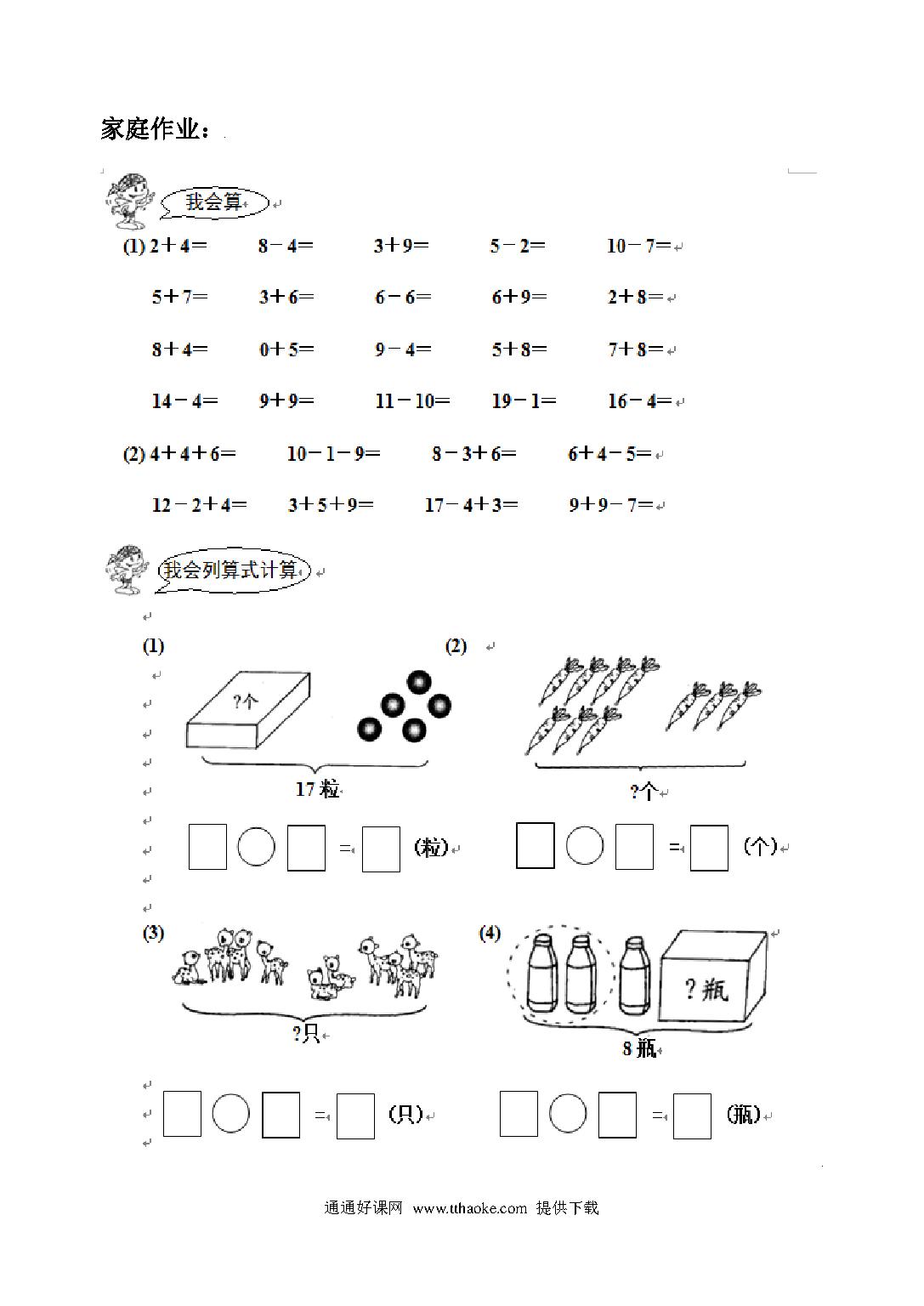 人教版一年级数学下册思维训练题免费下载打印