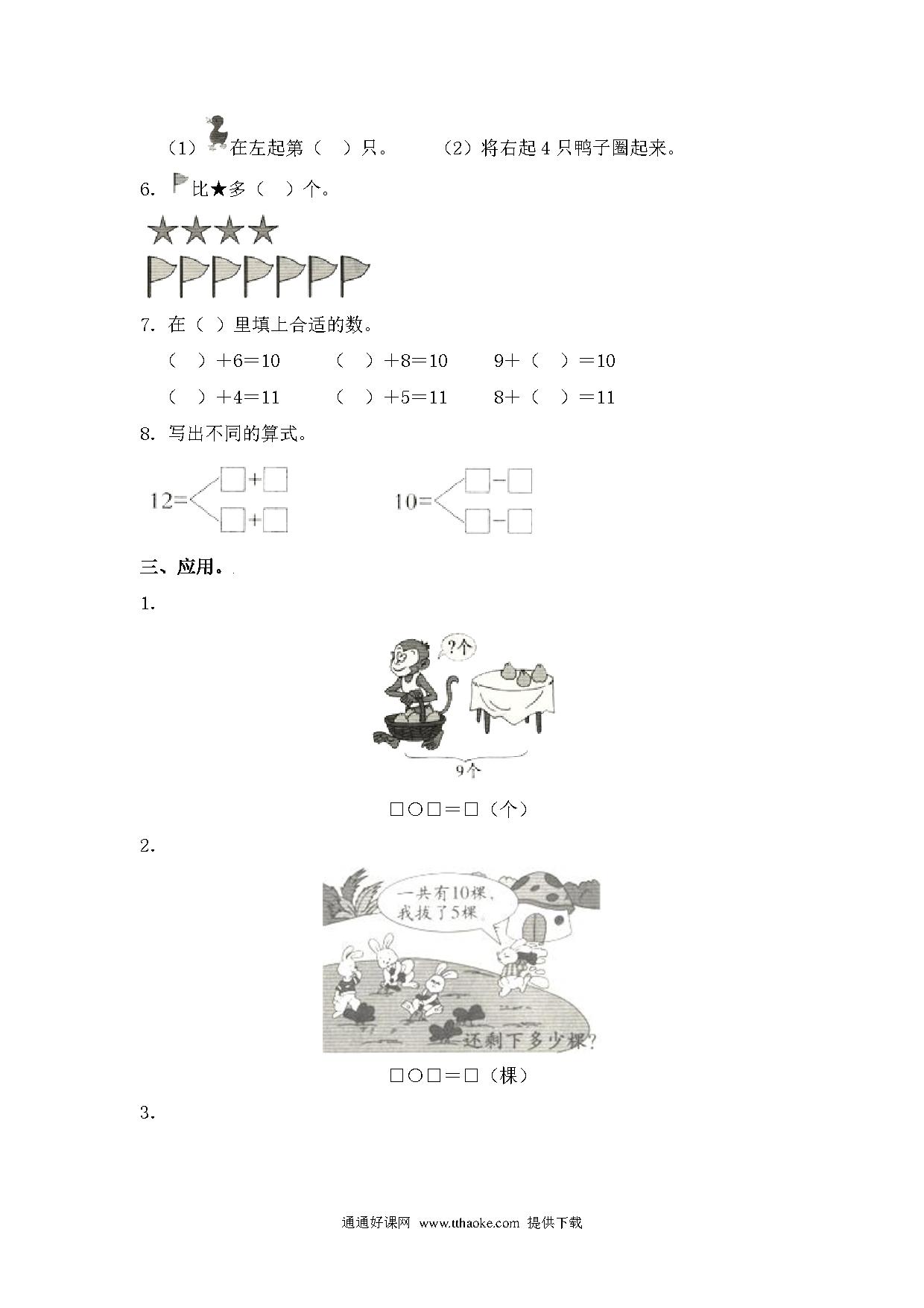 人教版一年级数学上学期期中竞赛试卷免费下载打印(附答案)