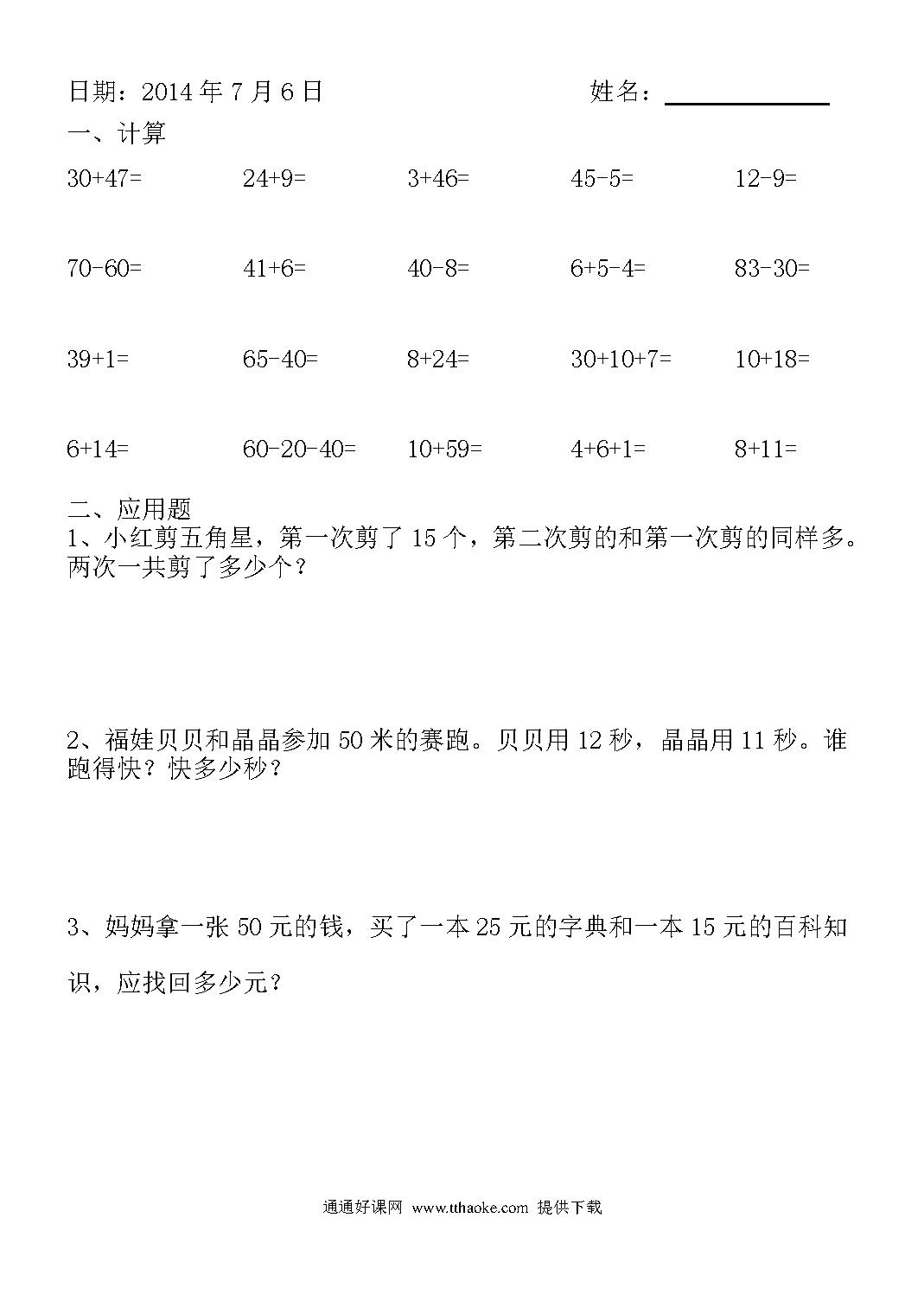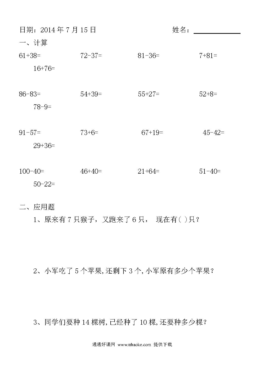 2023人教版一年级数学下册期末综合复习题免费下载打印(附答案)