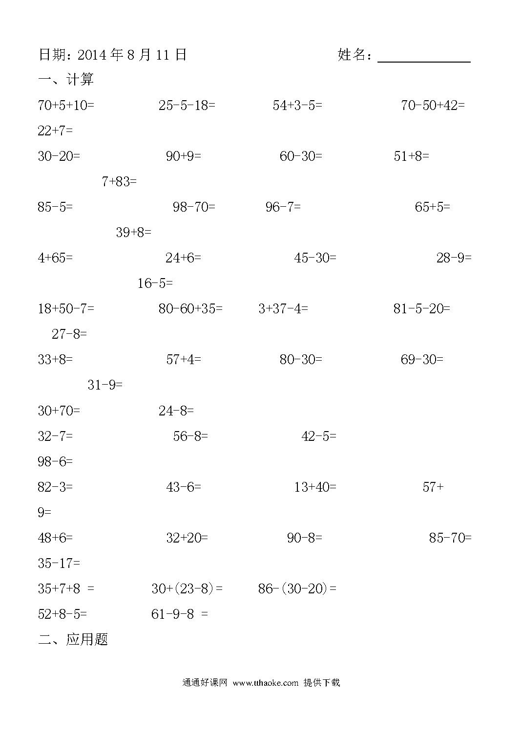 2022-2023学年一年级数学下学期素养练习题免费下载