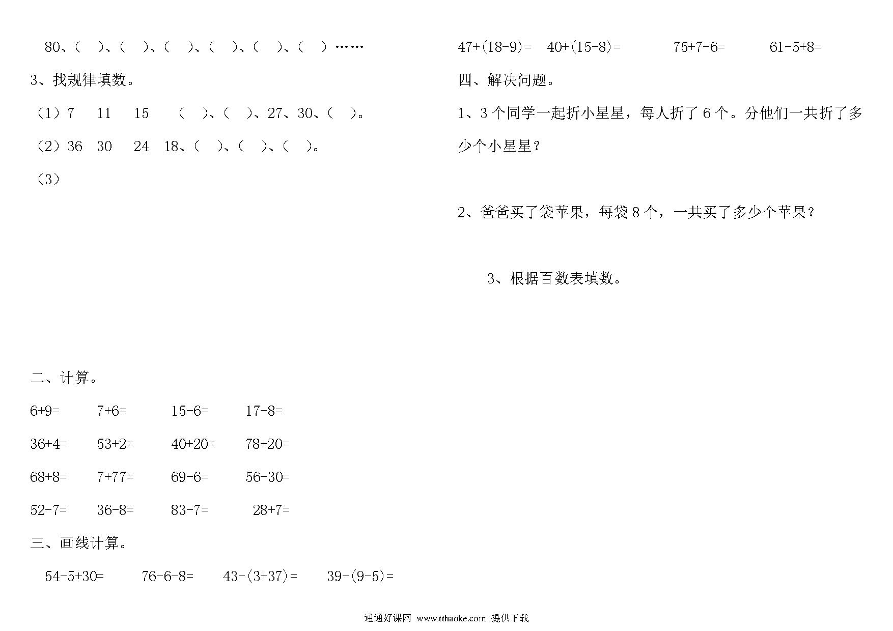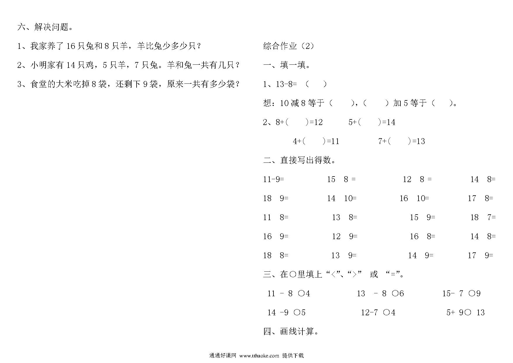 小学一年级数学下册作业题