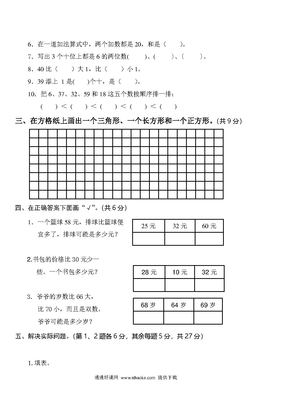 2023年苏教版一年级数学下册期末测试卷可下载打印(附答案)