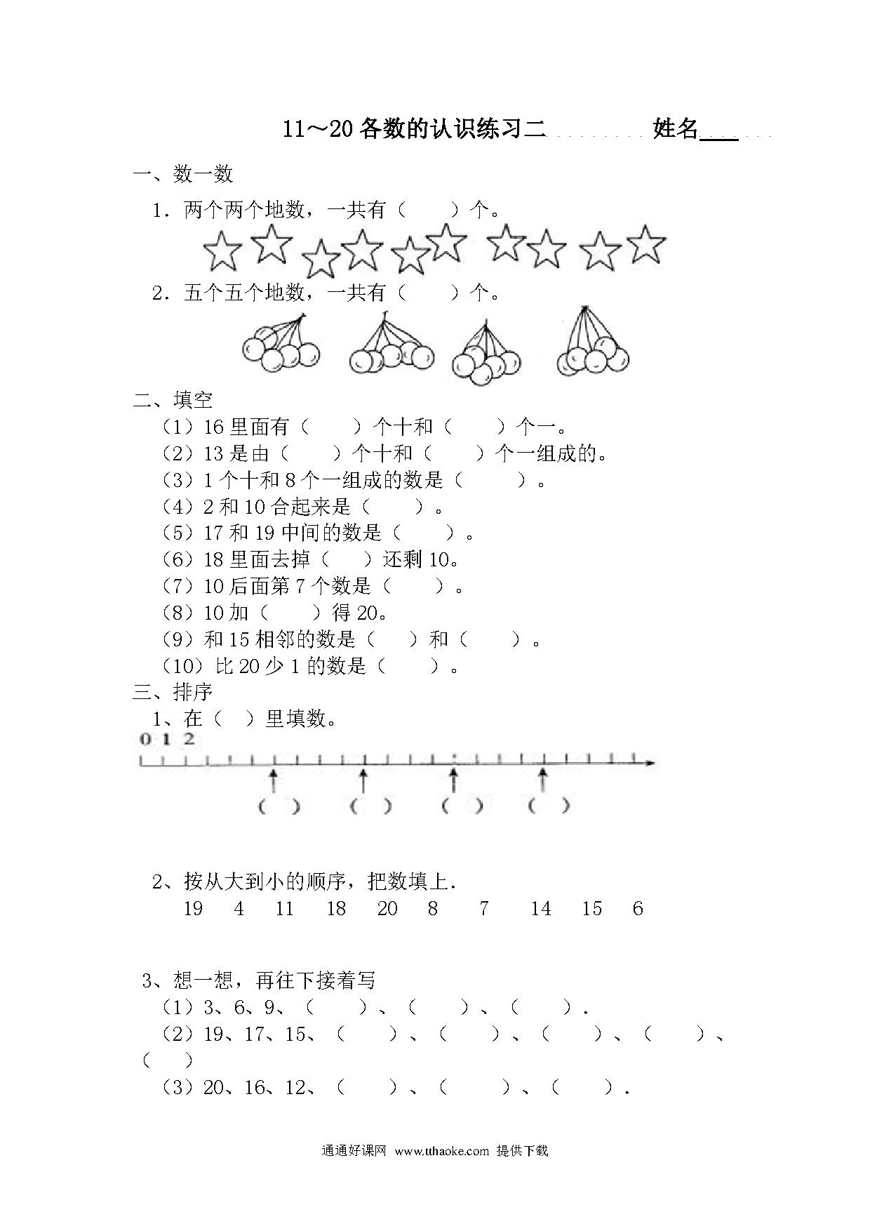 一年级数学11~20各数的认识练习二