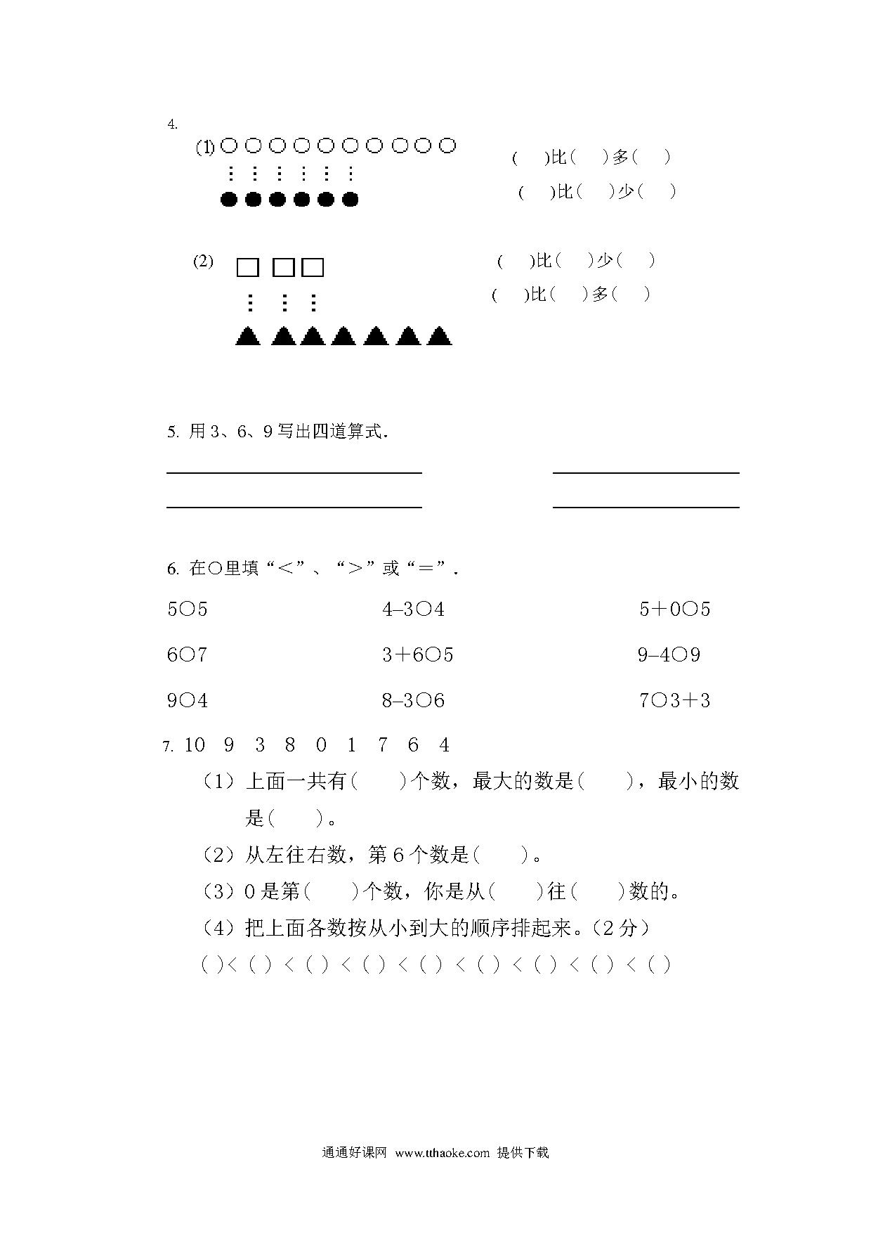 一年级数学上册期末复习题1
