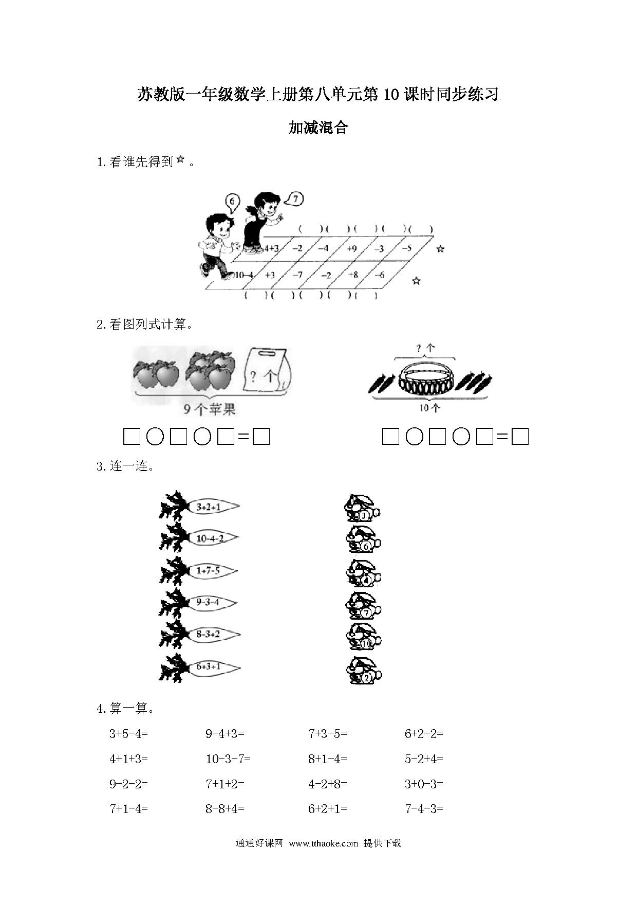 苏教版一年级数学上册第八单元加减混合同步练习题及答案.pdf