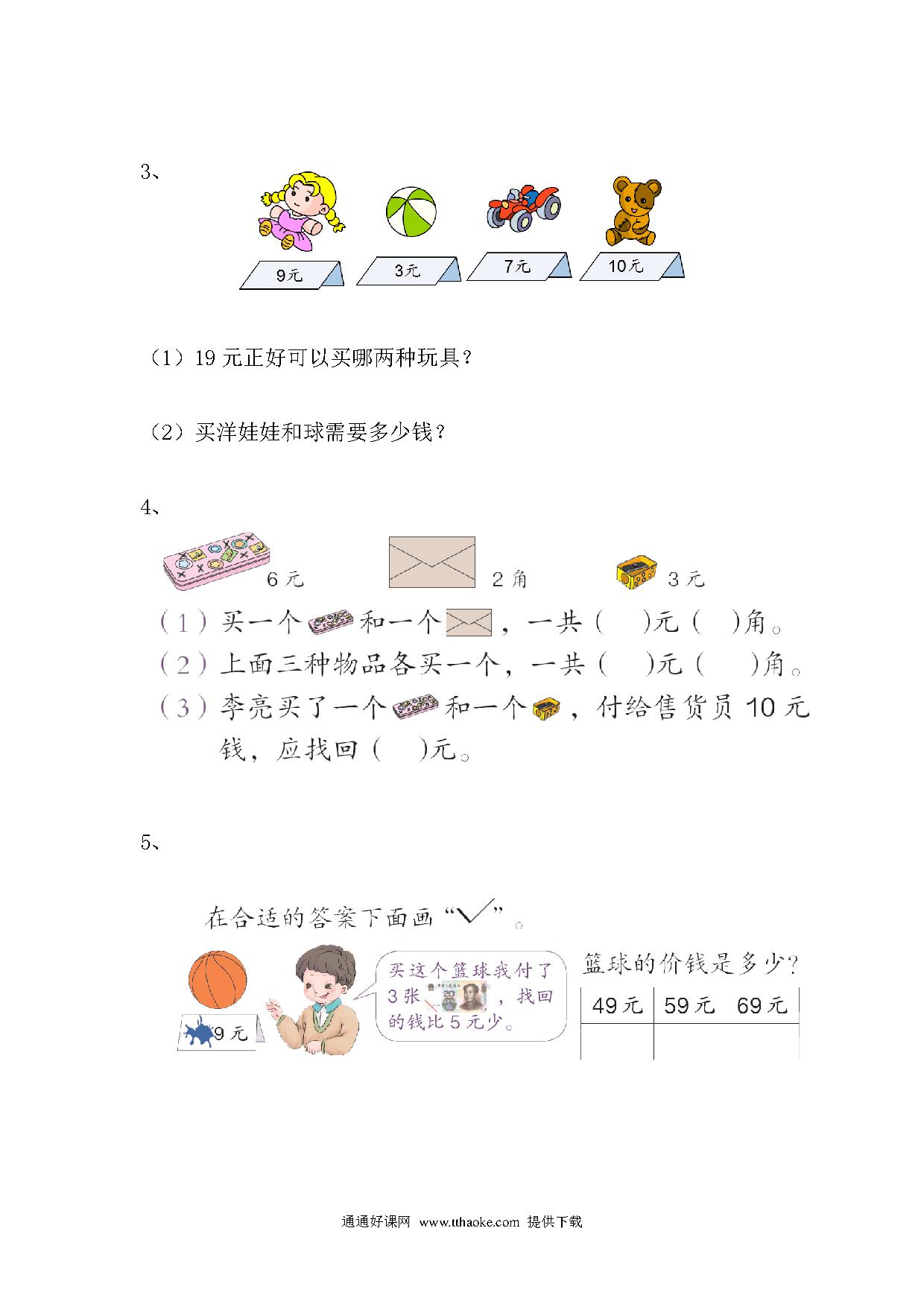 2022-2023学年一年级数学下学期素养练习题免费下载