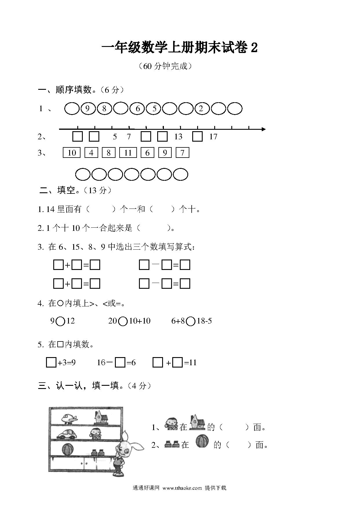 人教版一年级数学上学期期中竞赛试卷免费下载打印(附答案)