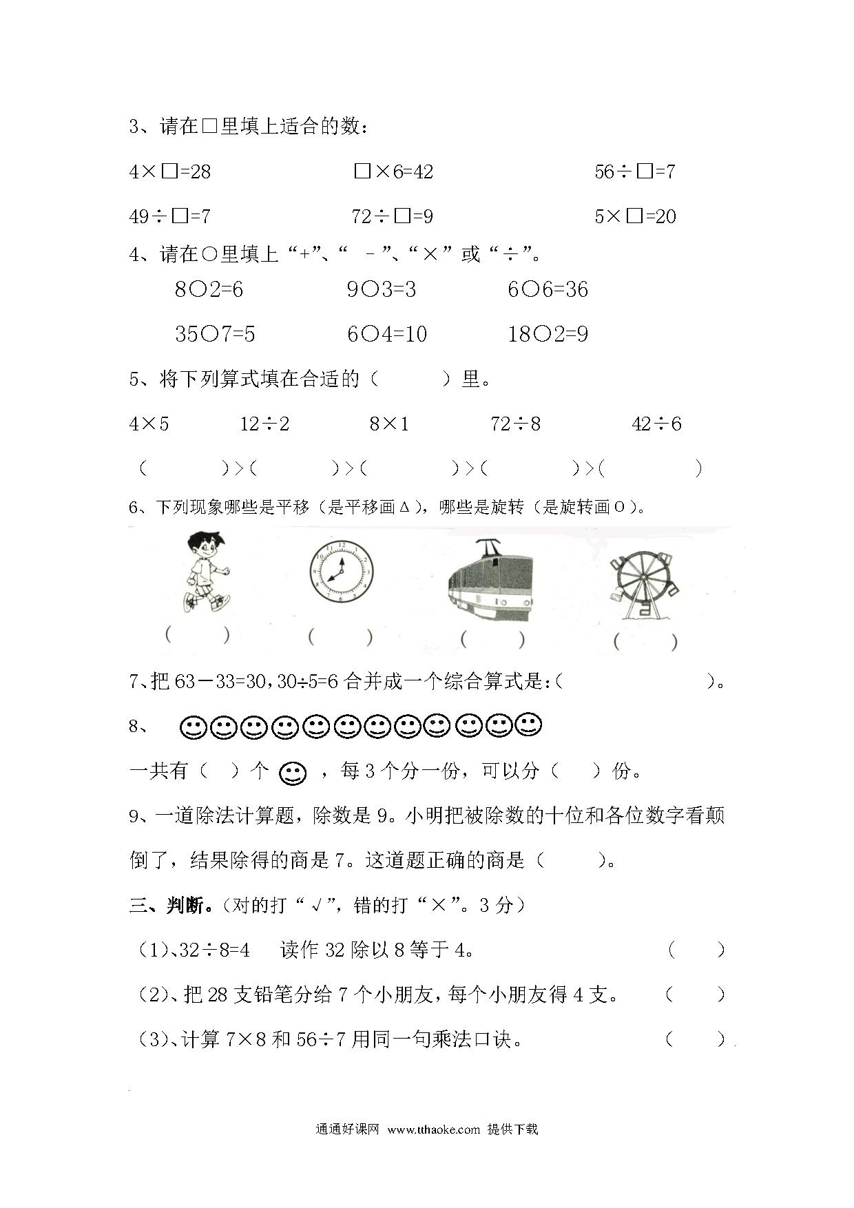 2024人教版二年级数学下册期末考试卷免费下载打印(附答案)