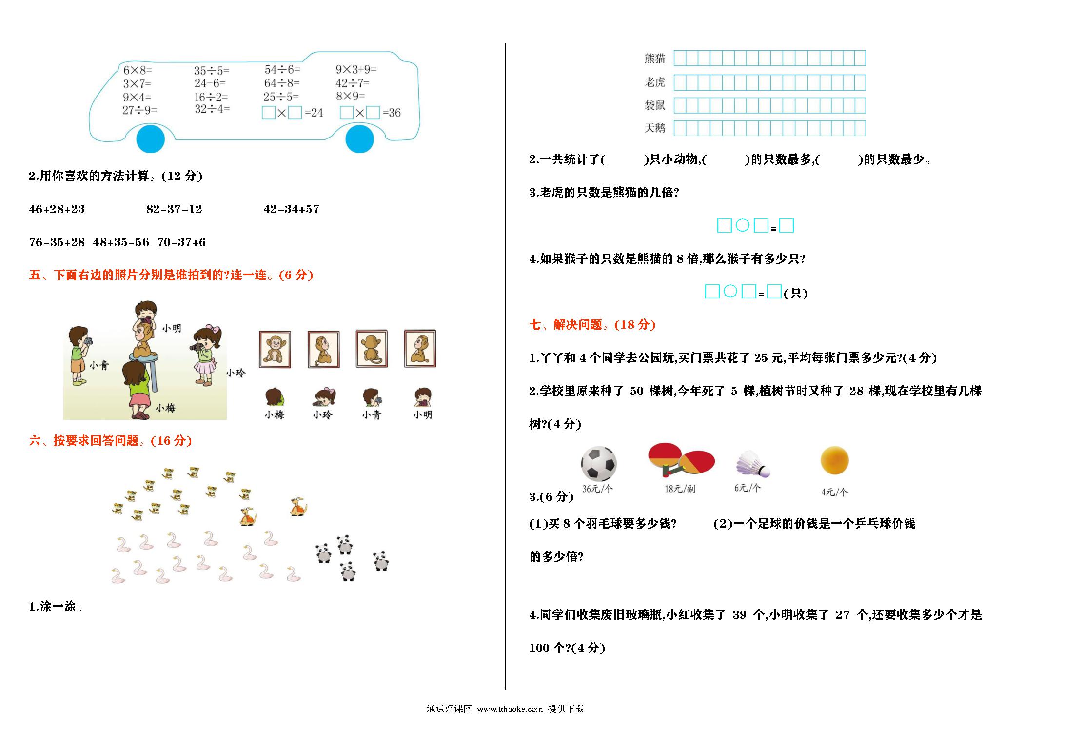 2024人教版二年级数学下册期末考试卷免费下载打印(附答案)