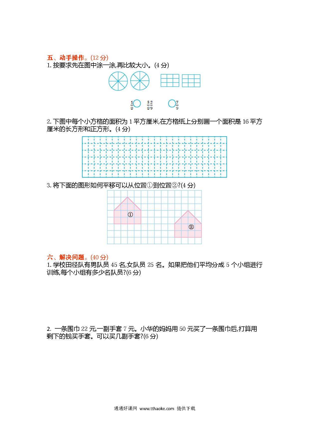 人教版2022-2023三年级数学上册第五单元测试卷可下载(附答案)