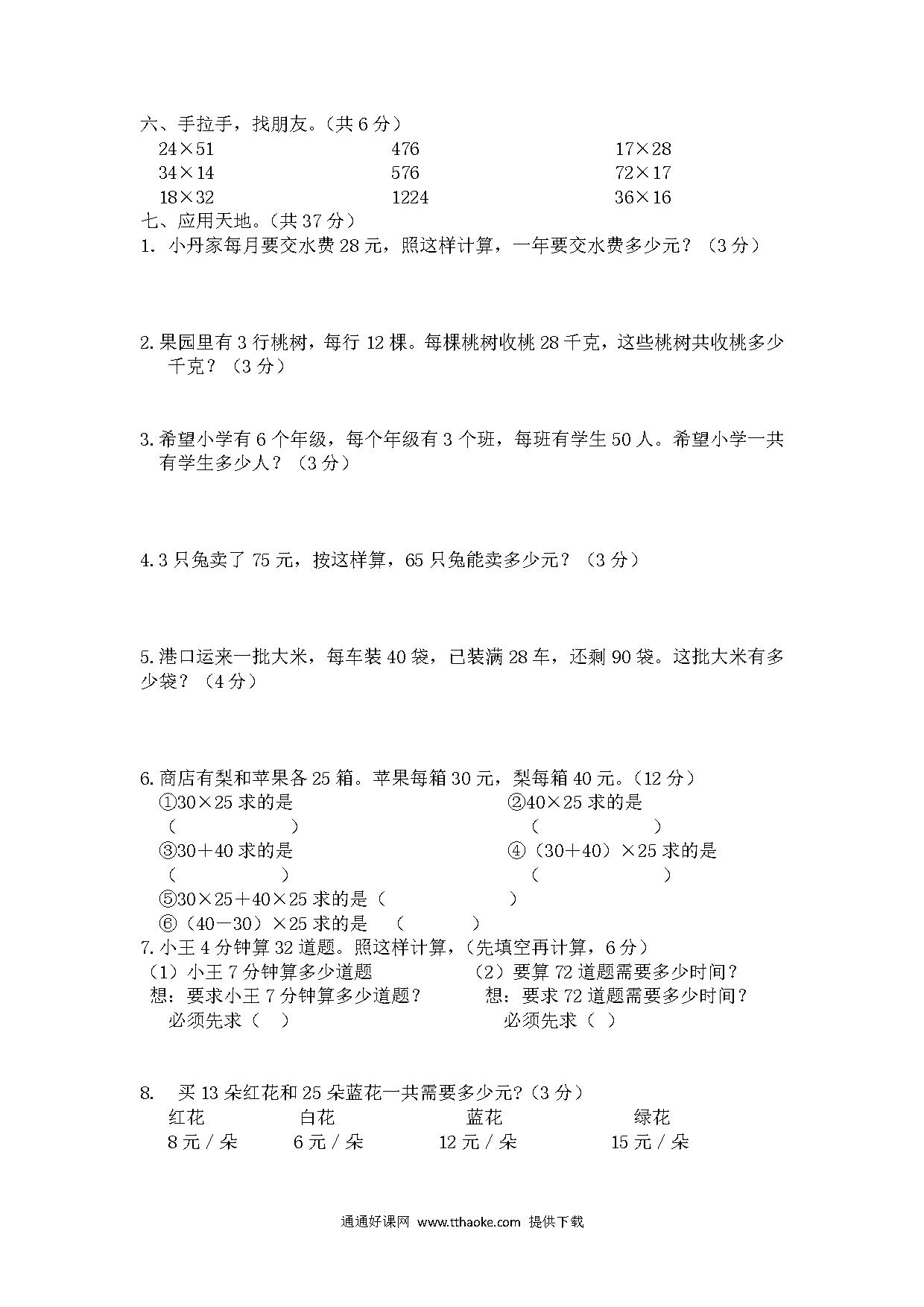 2022-2023人教版三年级数学上册期中测试卷下载(附答案)