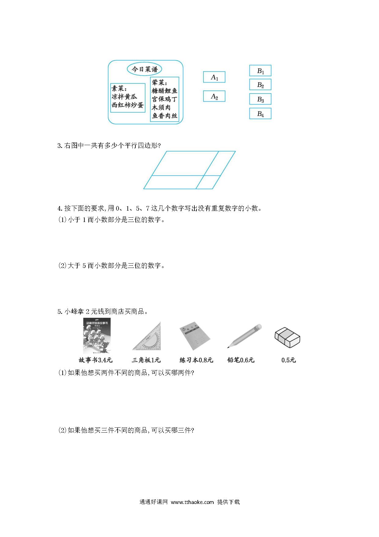 人教版2022-2023三年级数学上册第五单元测试卷可下载(附答案)