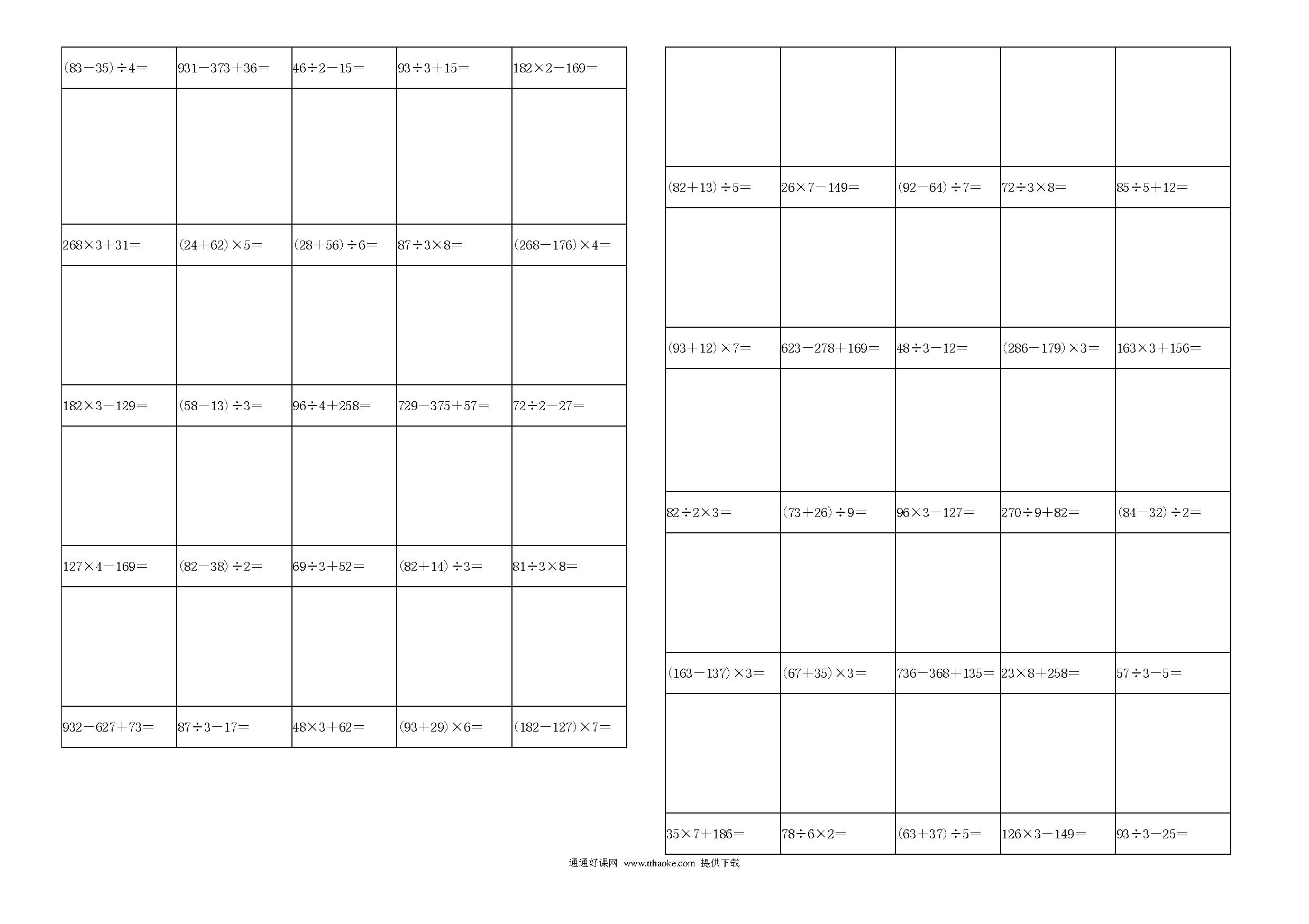 2022年人教版三年级数学上册期中基础复习卷可下载(附答案)