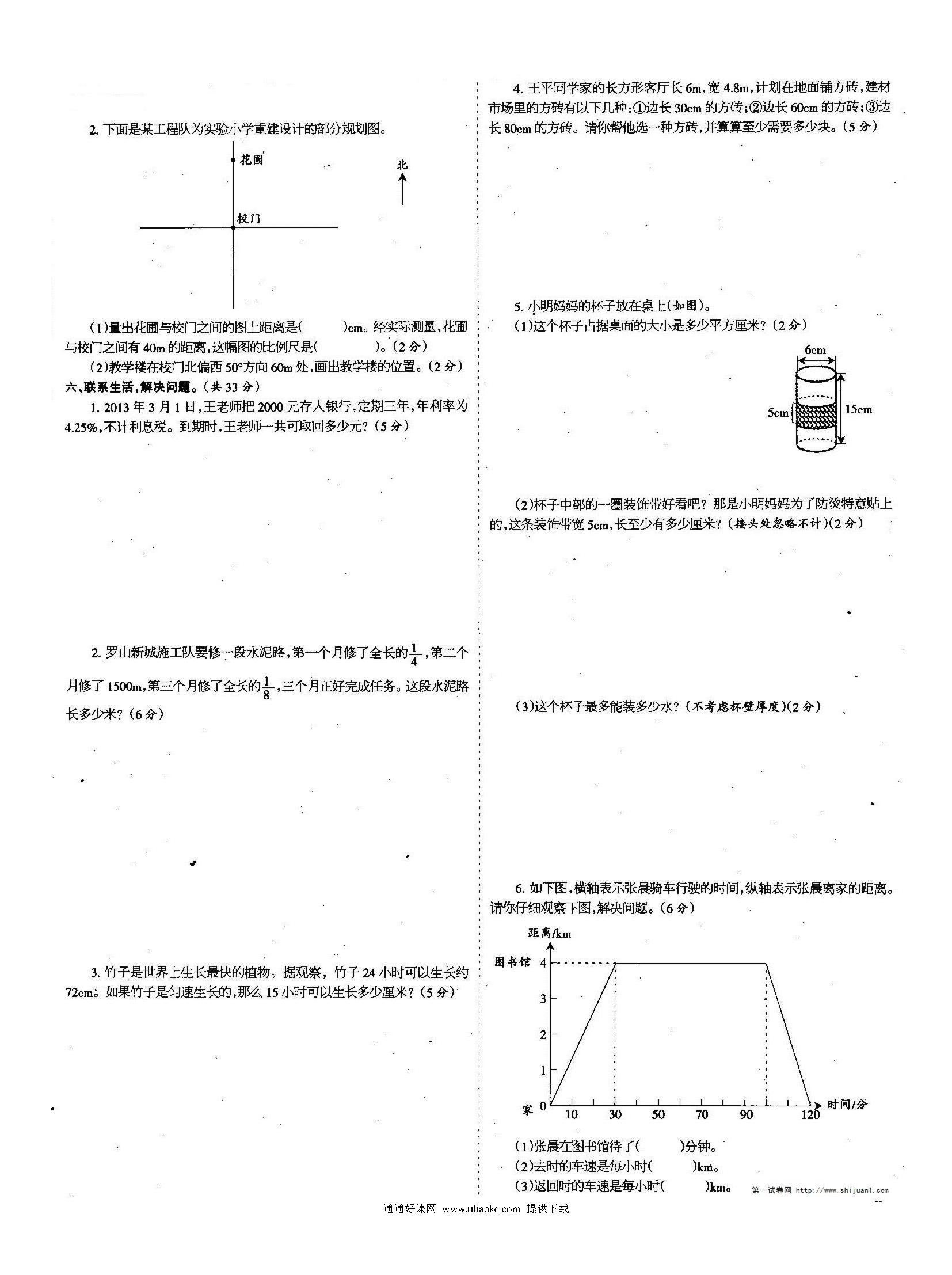 2022年苏教版六年级数学上册期中综合质量调研试卷可下载(附答案)