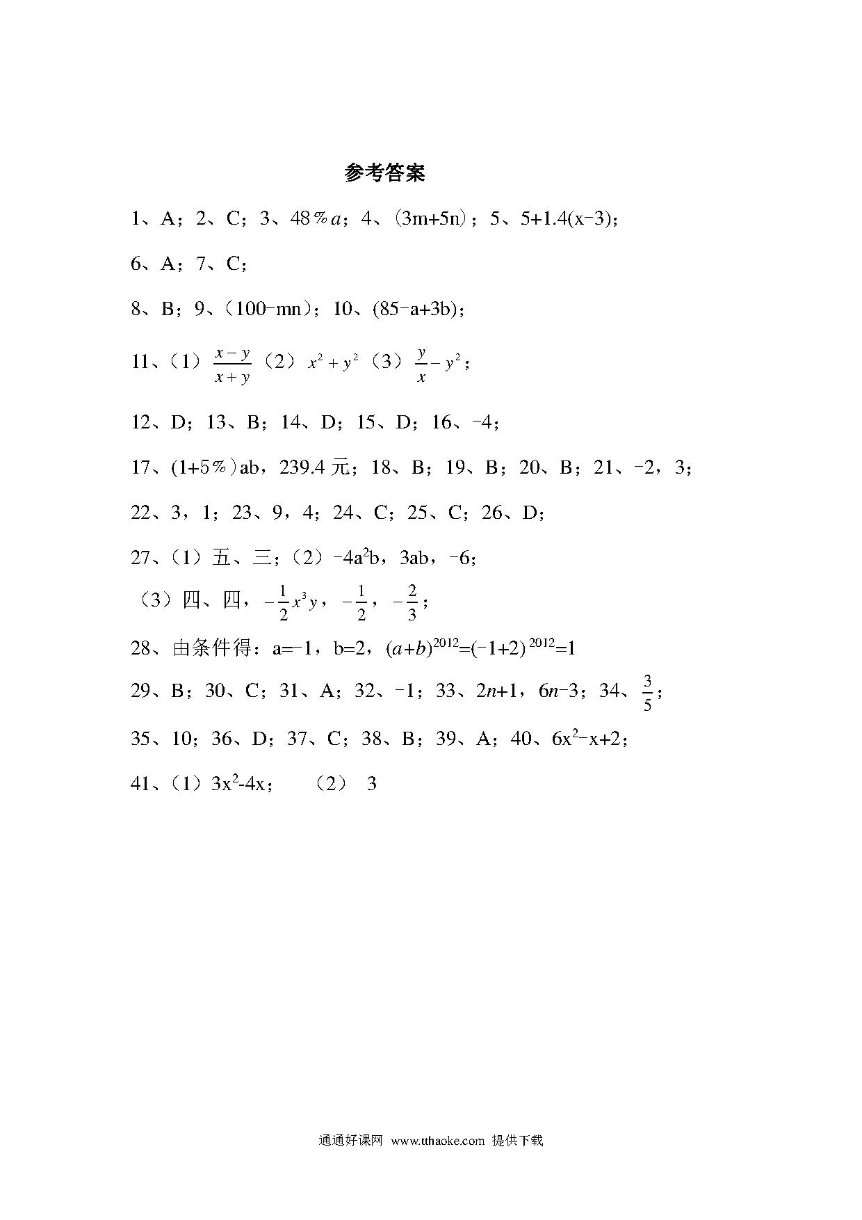 湘教版七年级数学上册第二章代数式复习卷含答案.pdf