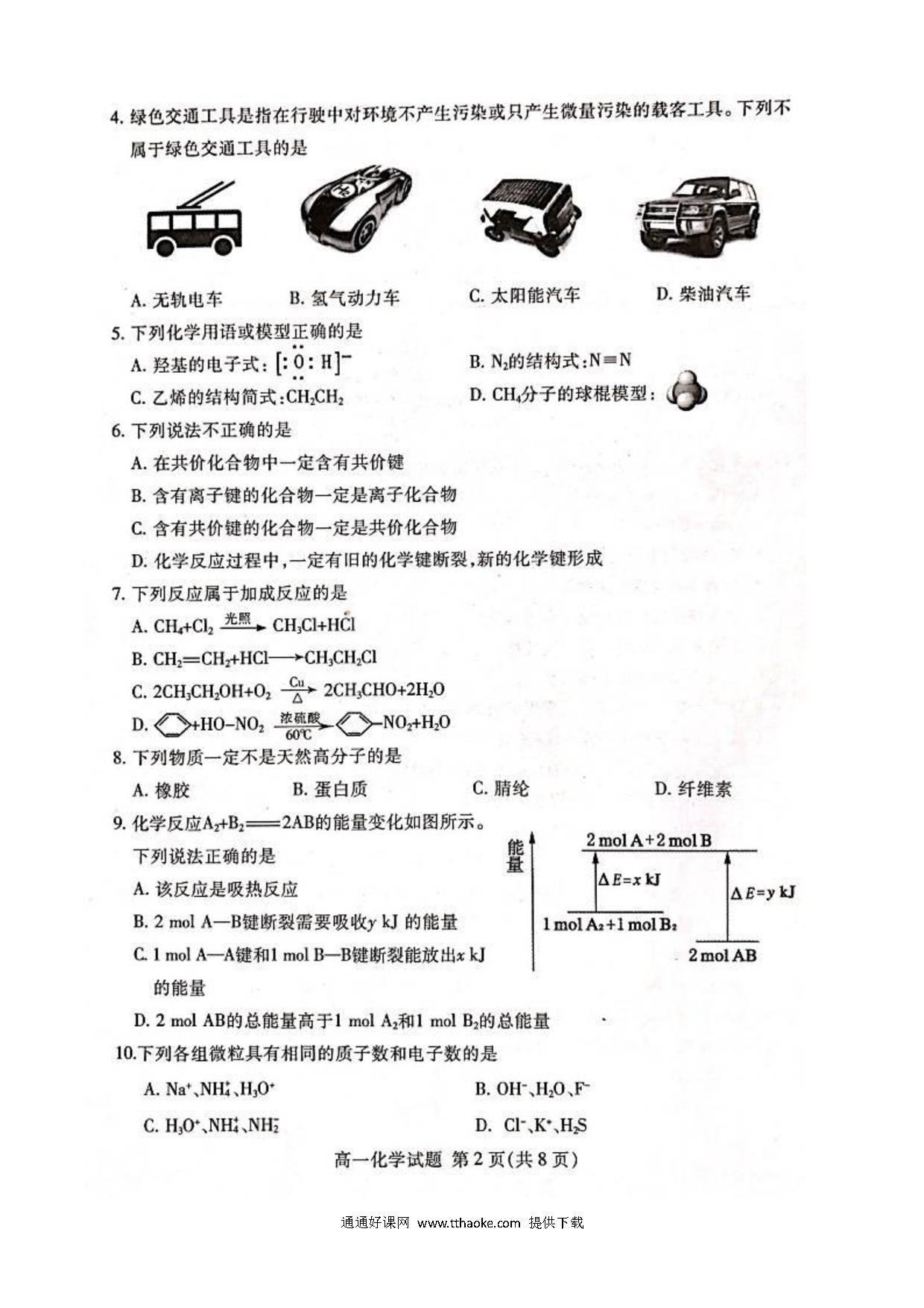 泰安市第二学期高一化学期末试卷及答案.pdf