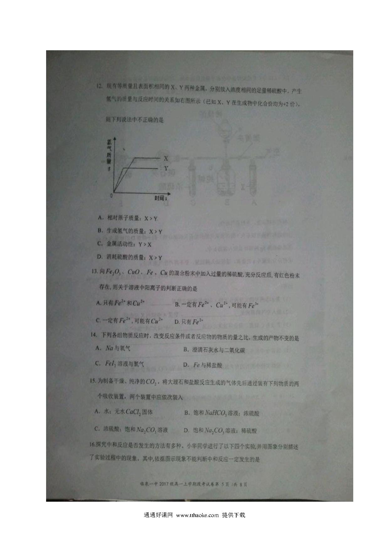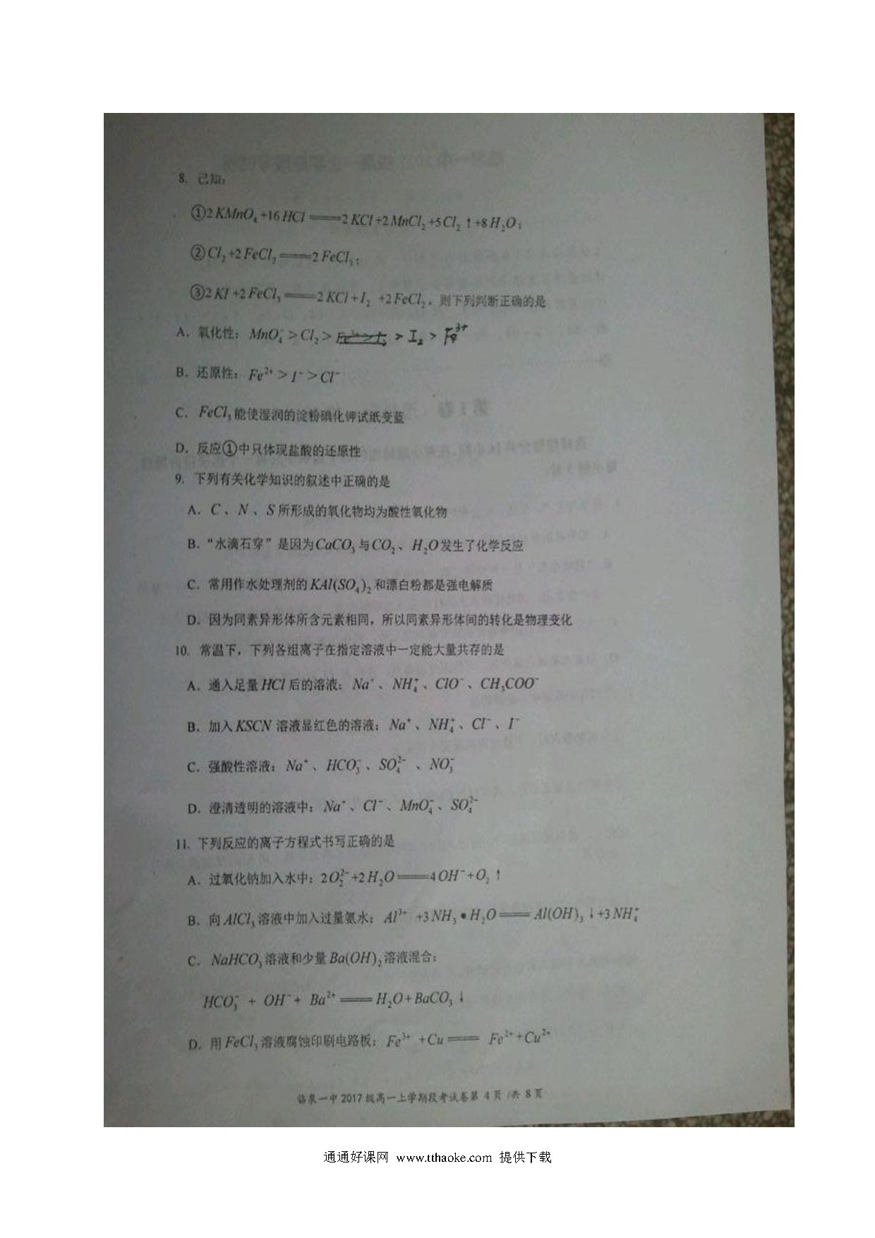 临泉一中第一学期高一化学期末试题及答案.pdf