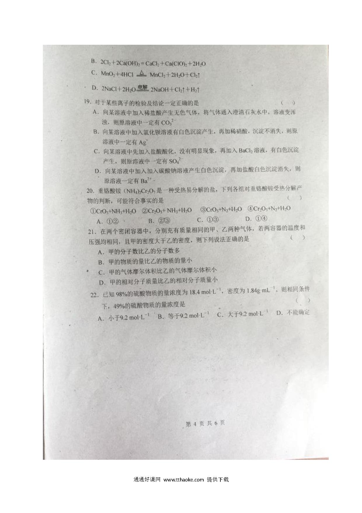 蓉城名校联盟高一上学期化学期中考试试题及答案