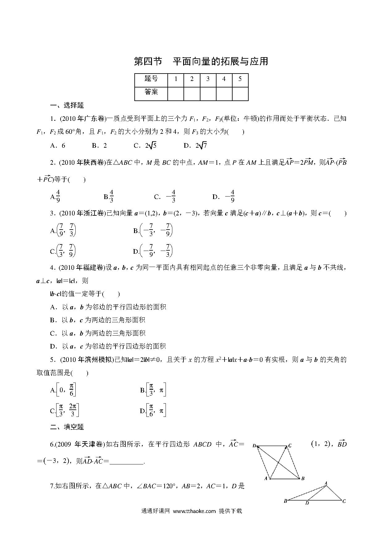 2011年高考一轮课时训练(理)8.4平面向量的拓展与应用 (通用版