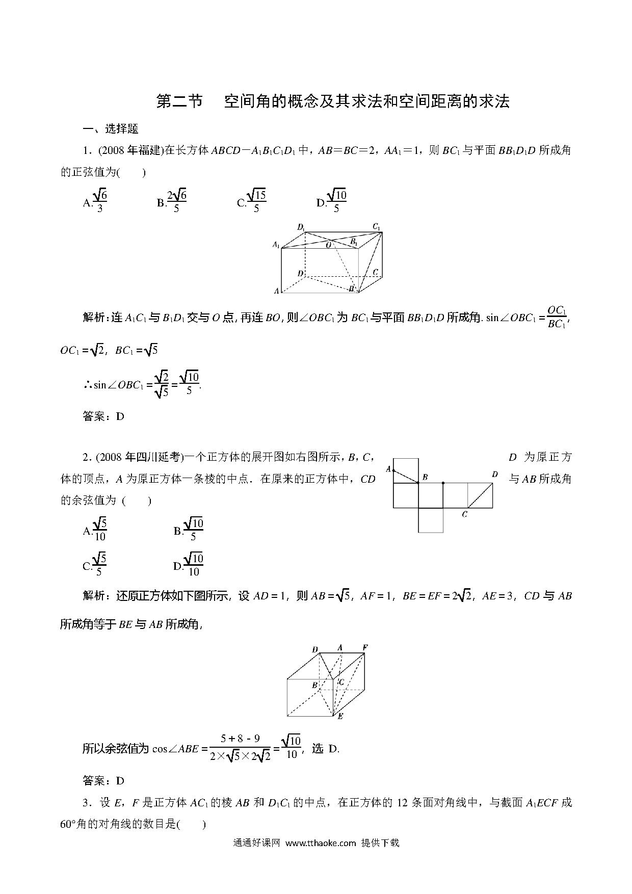 2011年高考一轮课时训练(理)11.2.2空间角的概念及其求法和空间距离的求法(通用版).pdf