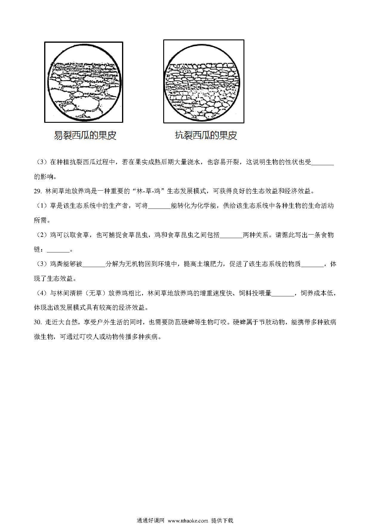 2023年四川省凉山彝族自治州中考生物真题(原卷版)
