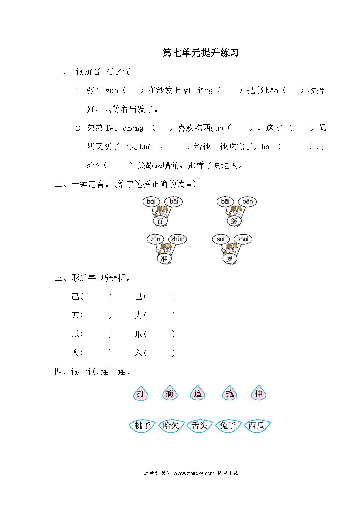2020-2021学年一年级语文下册第七单元测试题及答案一