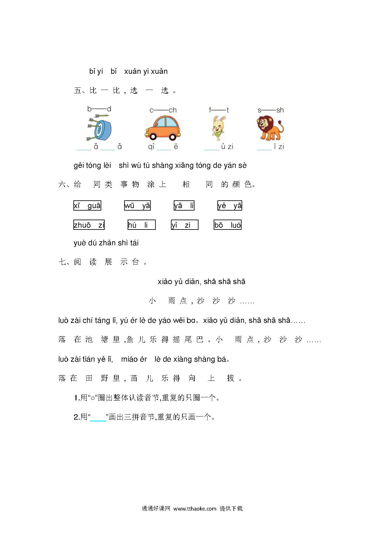 统编版2023年一年级语文下册期末综合测试卷可下载打印(附答案)