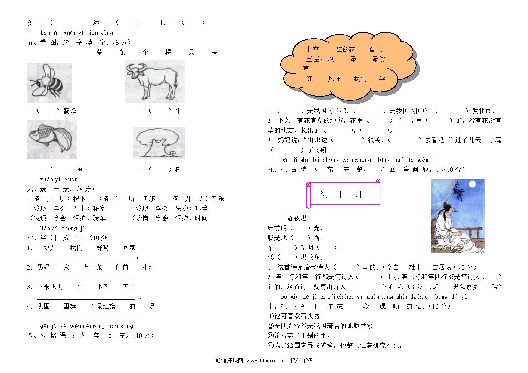 统编版2023年一年级语文下册期末综合测试卷可下载打印(附答案)