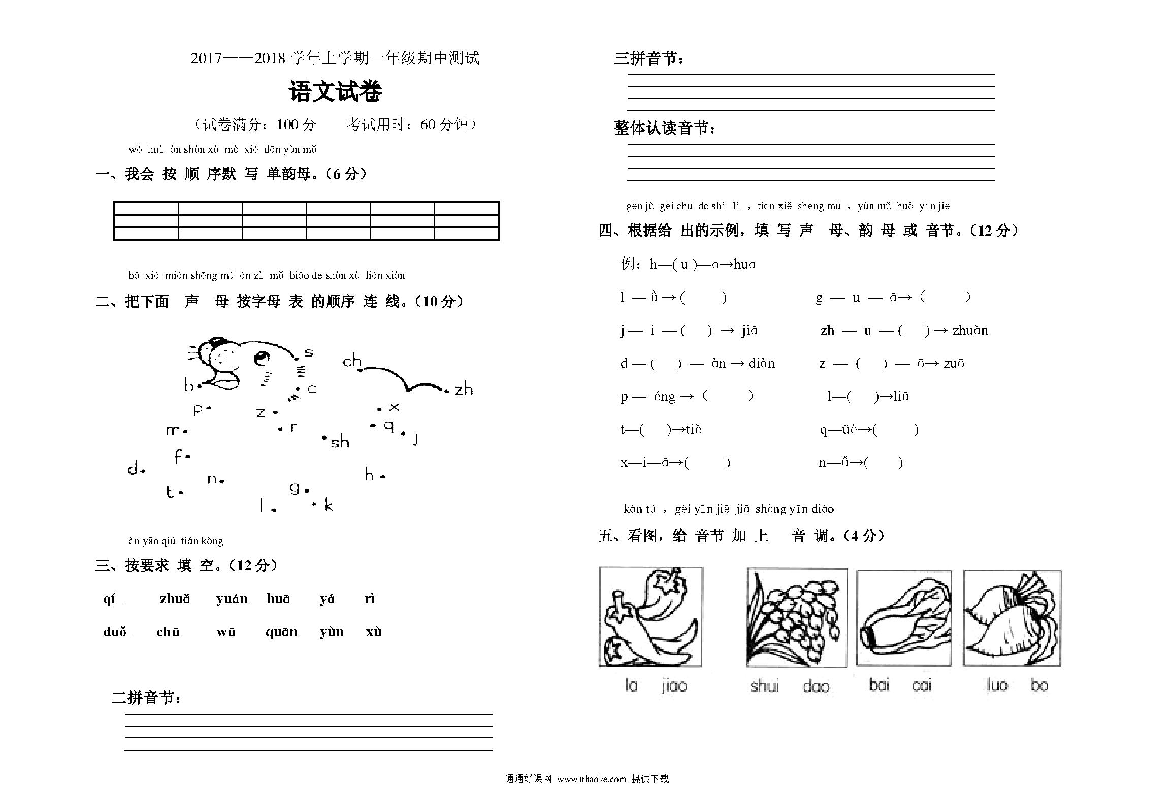 上学期部编版一年级语文上册期中试卷