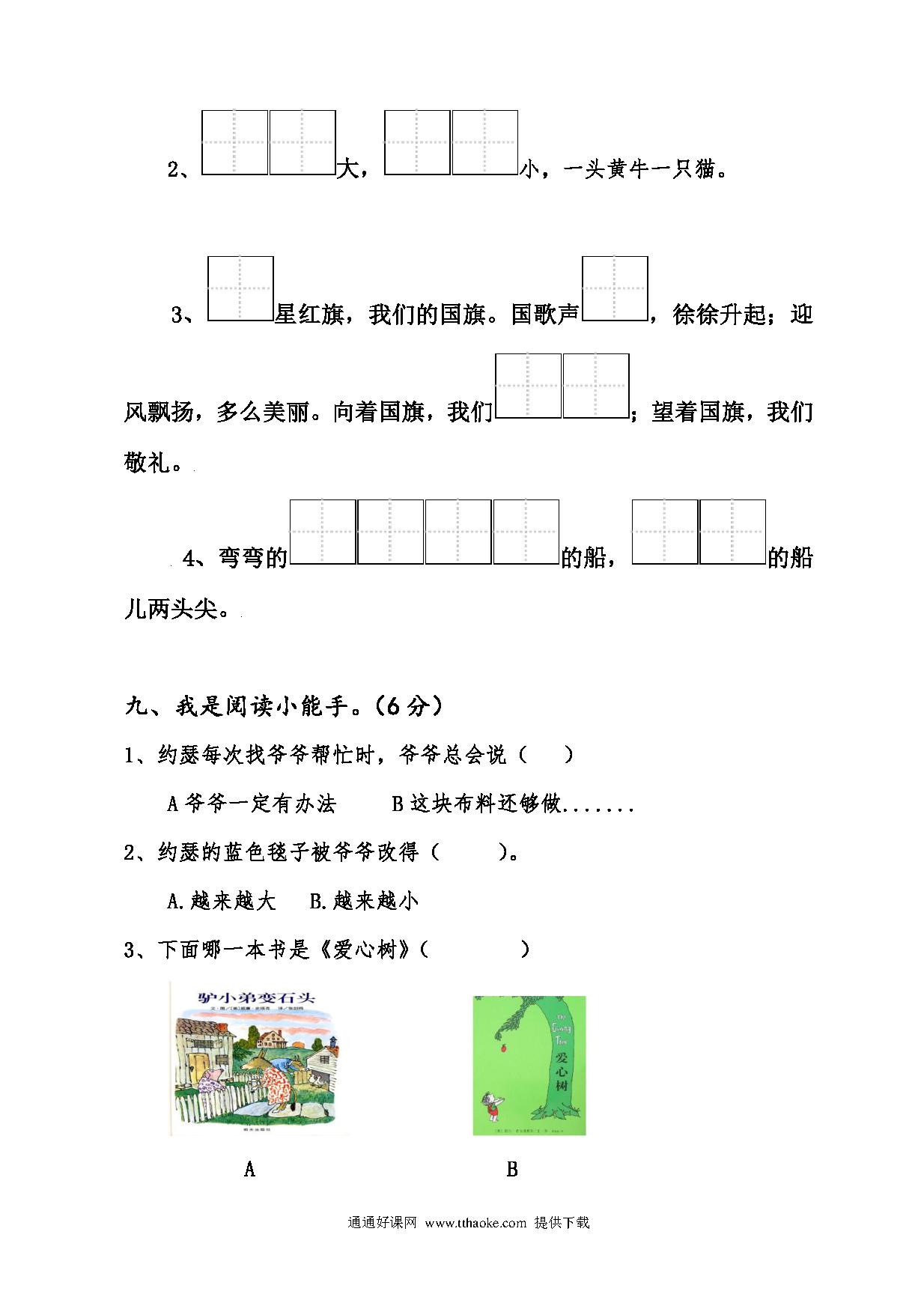 2023年新版一年级语文下册期末考试卷可下载打印(附答案)