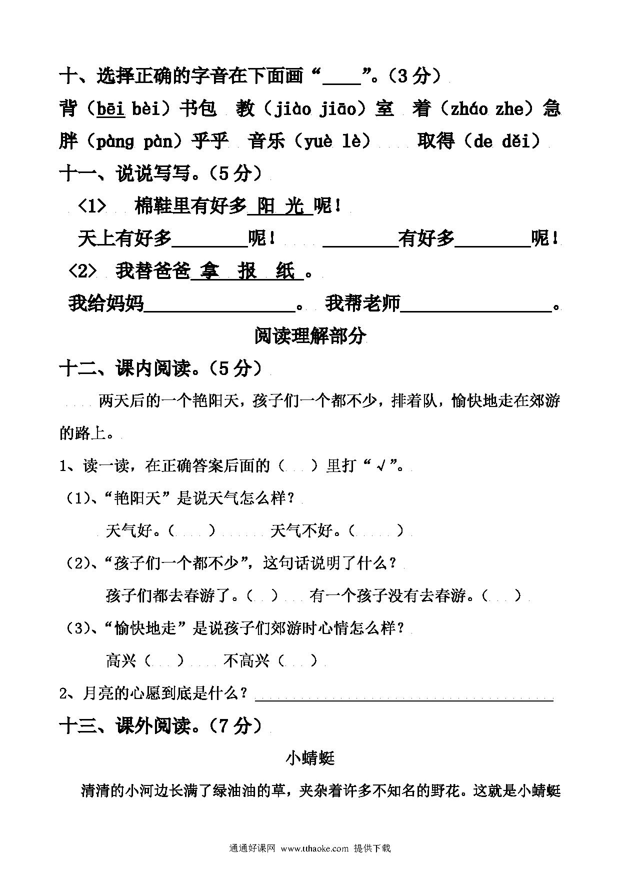 2013一年级语文下册第二单元测试题附听力材料.pdf