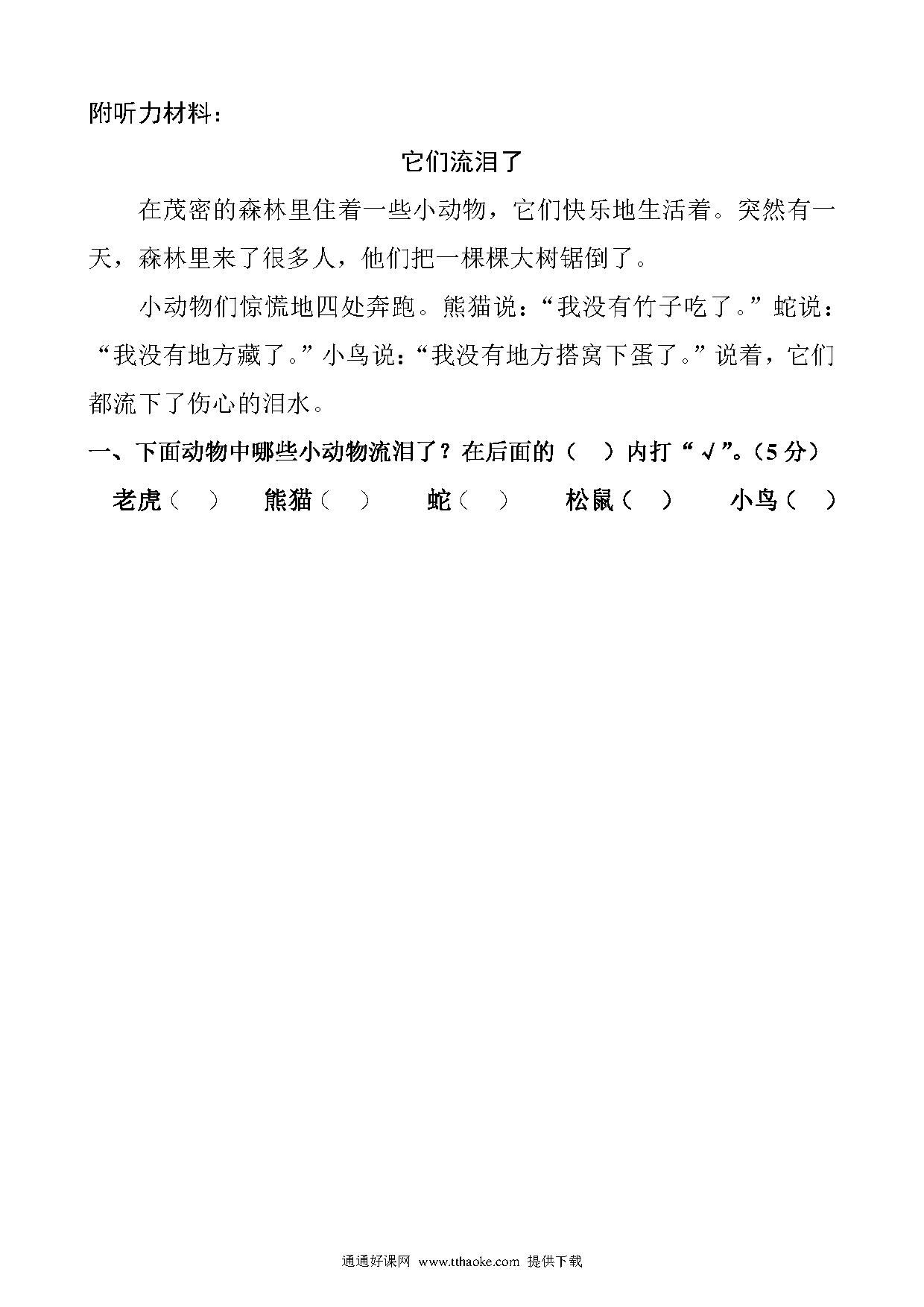 2013一年级语文下册第四单元测试题附听力材料.pdf