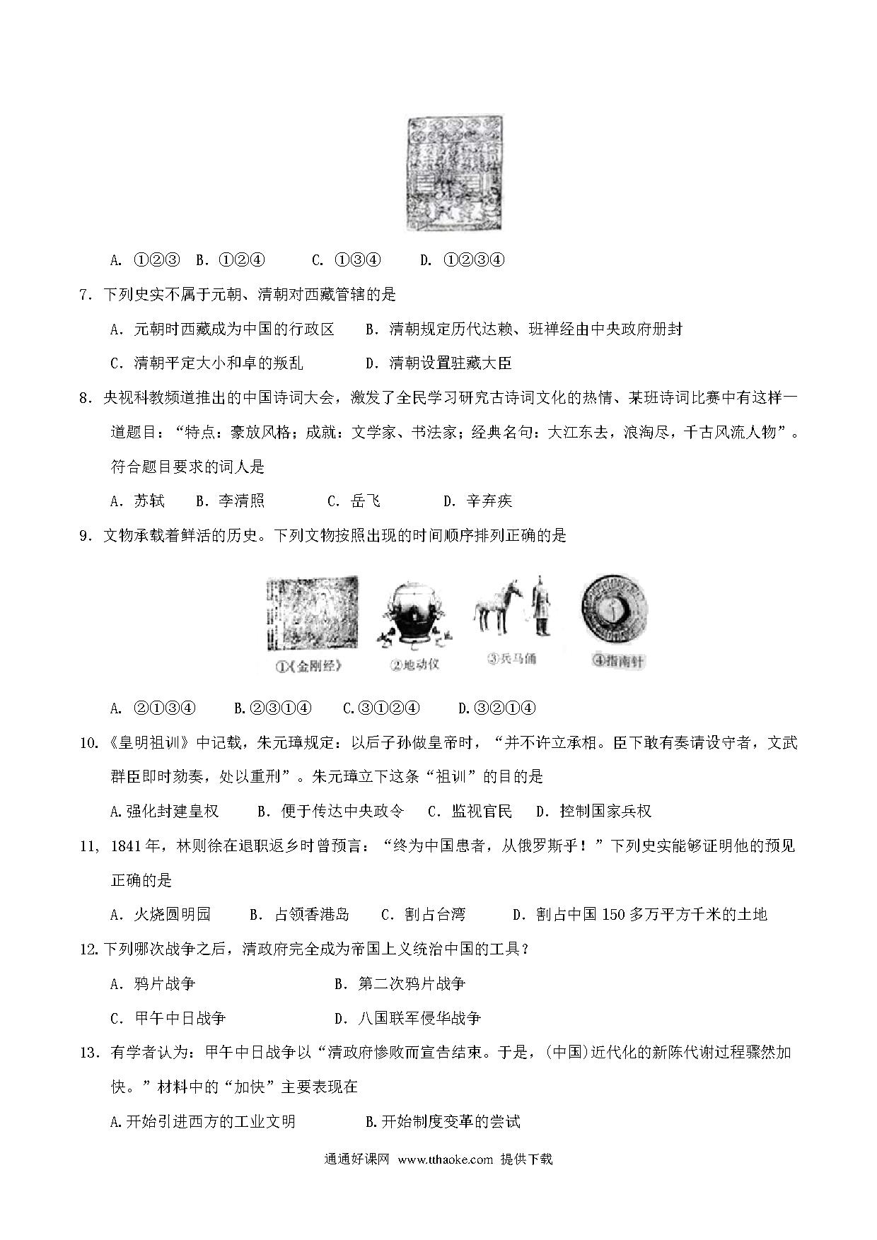 山东省泰安市2017年中考历史真题试题(毕业年级,含答案).pdf