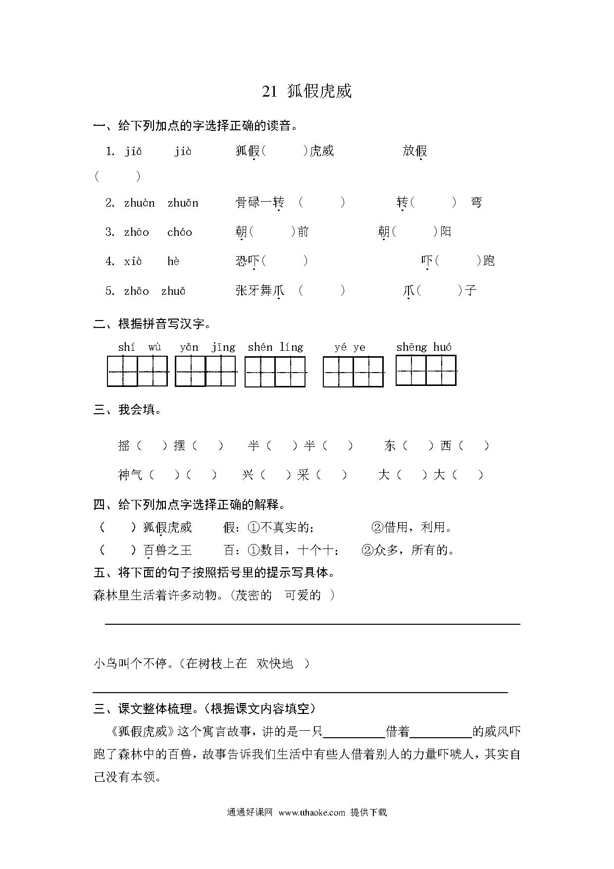部编版第21课狐假虎威练习题及答案.pdf