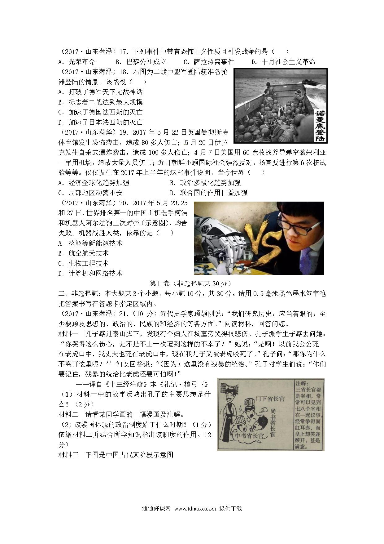 山东省菏泽市2017年中考历史真题试题(含答案).pdf