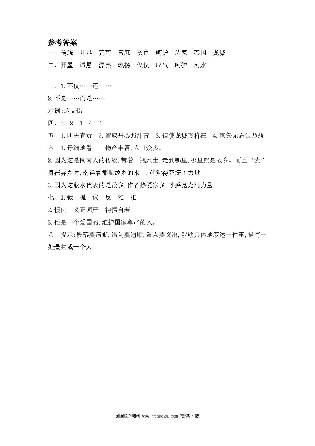 部编版2023年三年级语文下册期中测试卷可下载打印(附答案)