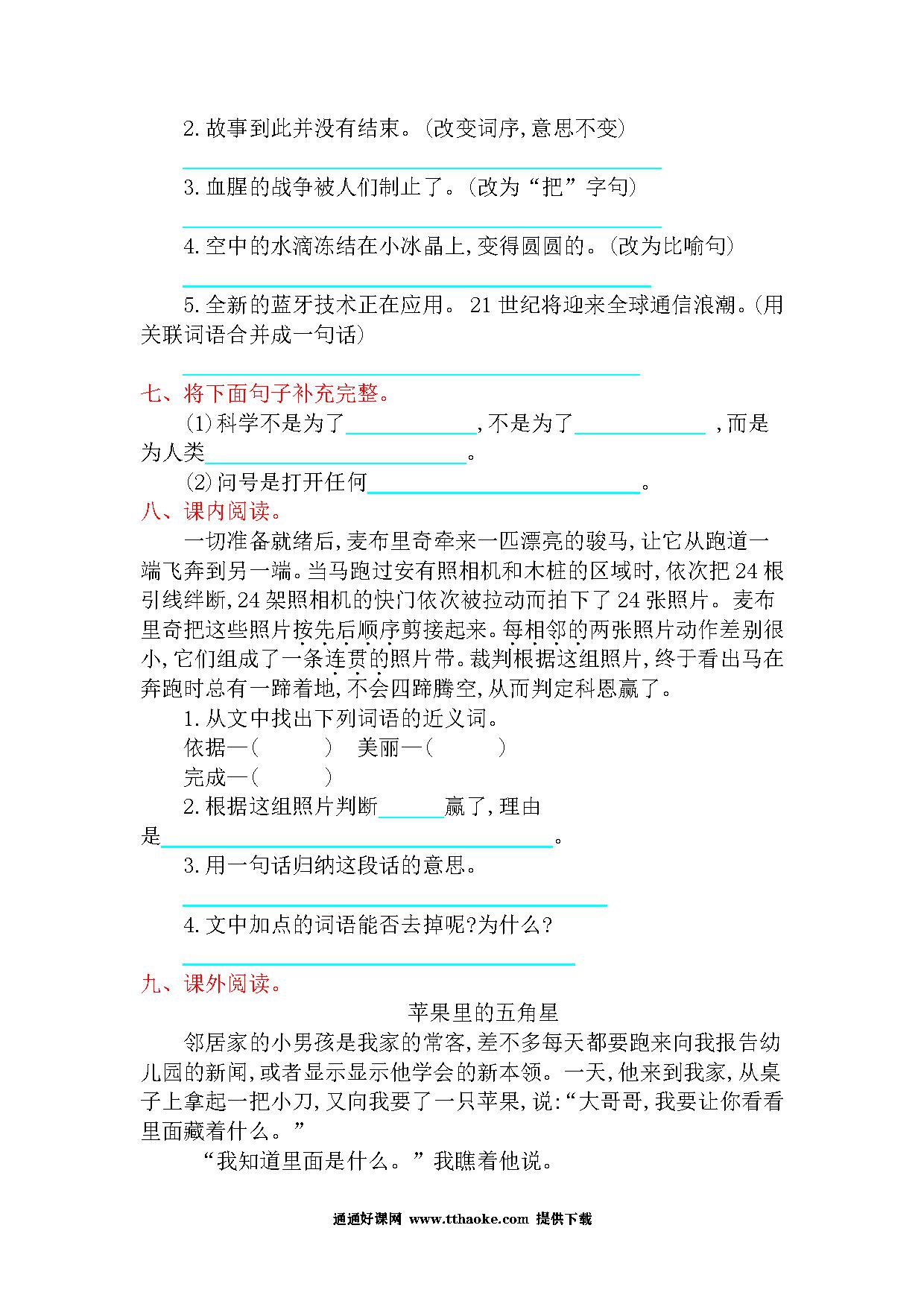 教科版三年级语文上册第六单元提升练习题及答案.pdf
