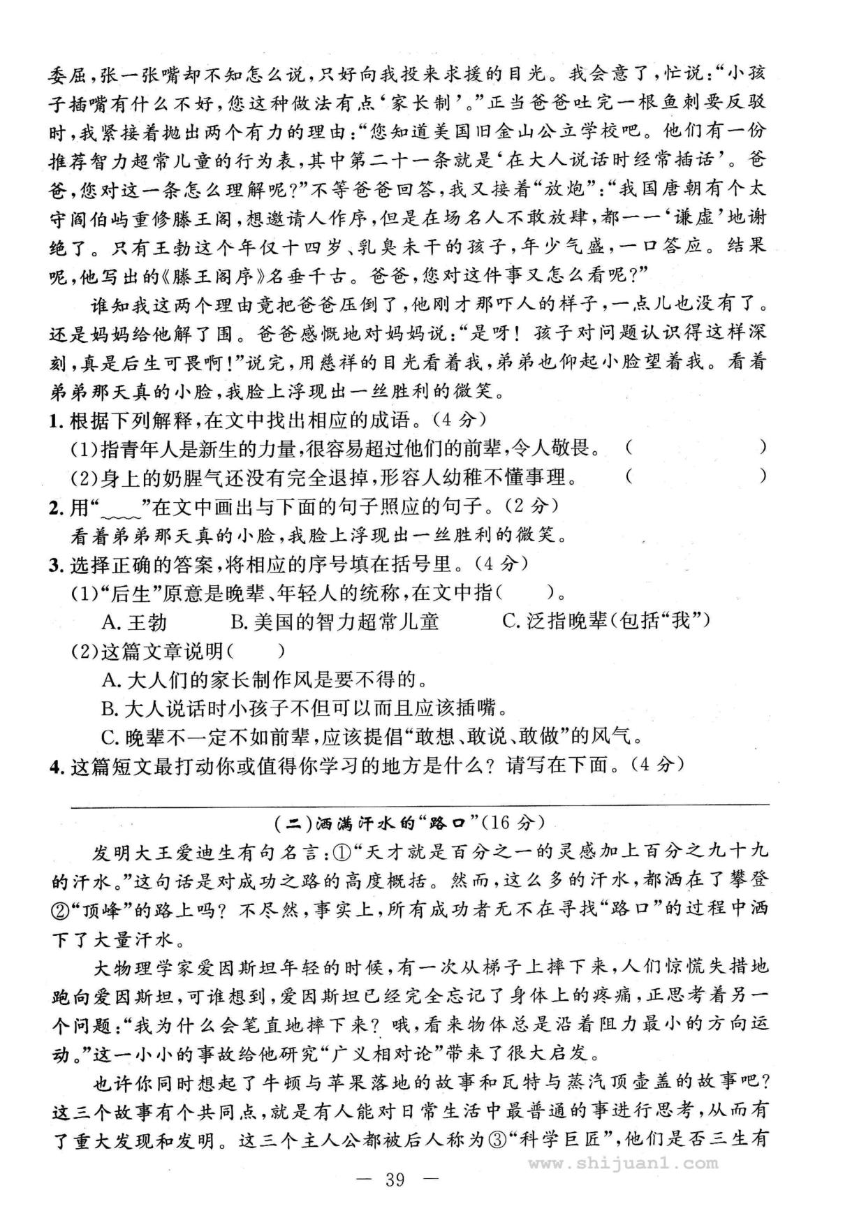 2020-2021学年六年级语文第二学期名校期末真题卷(十).pdf