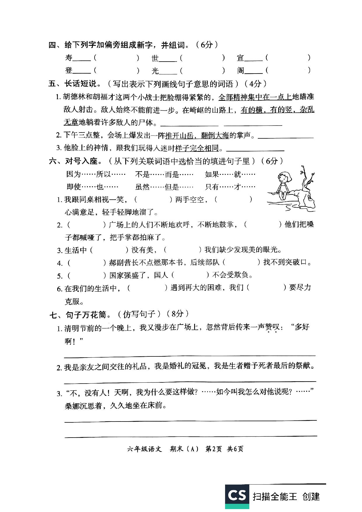 六年级上册语文试题-期末调研试题A卷 部编版(PDF无答案).pdf