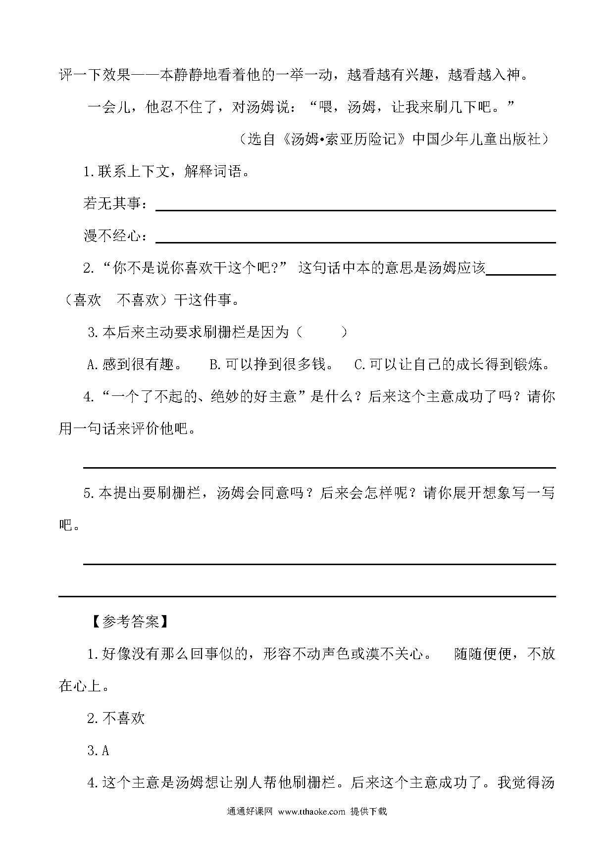 部编版六年级7汤姆•索亚历险记(节选)课外阅读练习题及答案.pdf