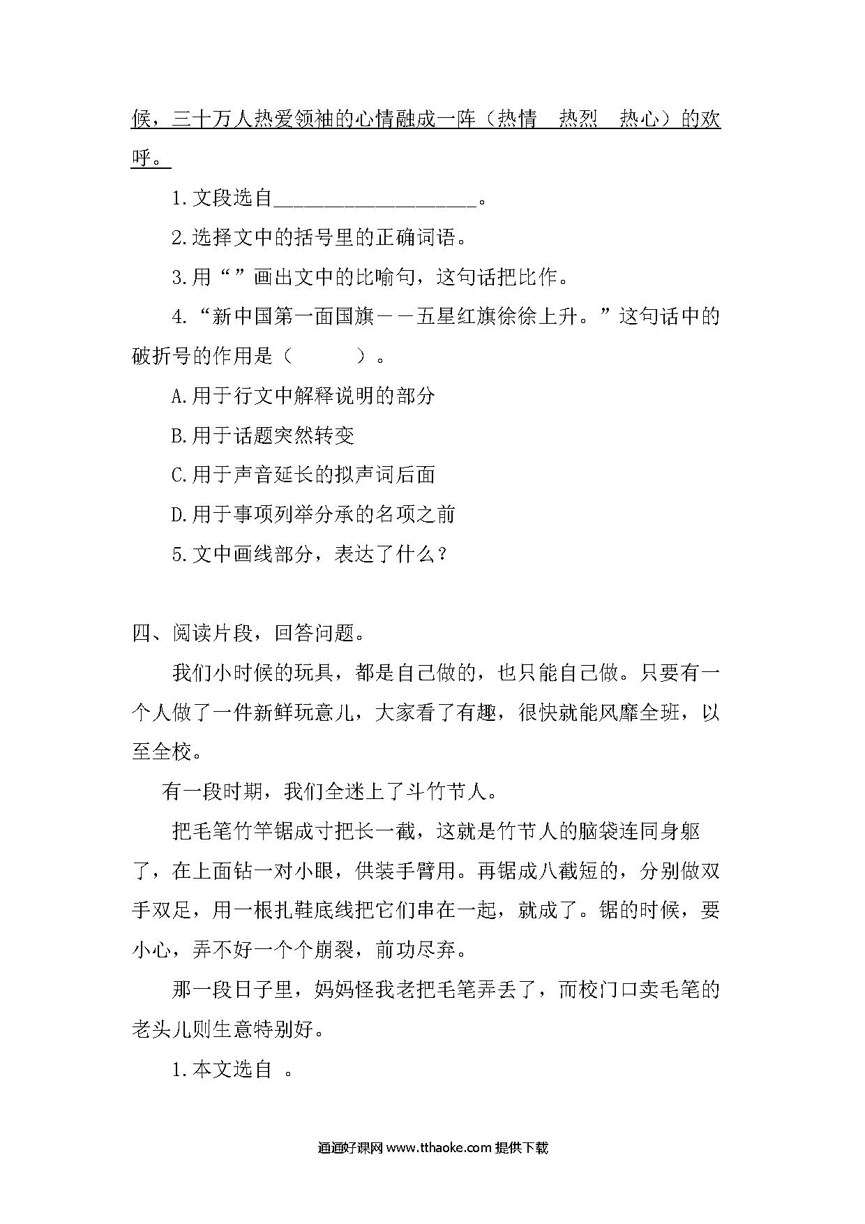 2022年部编版六年级语文上册第一单元课外阅读训练题附答案(可下载打印)