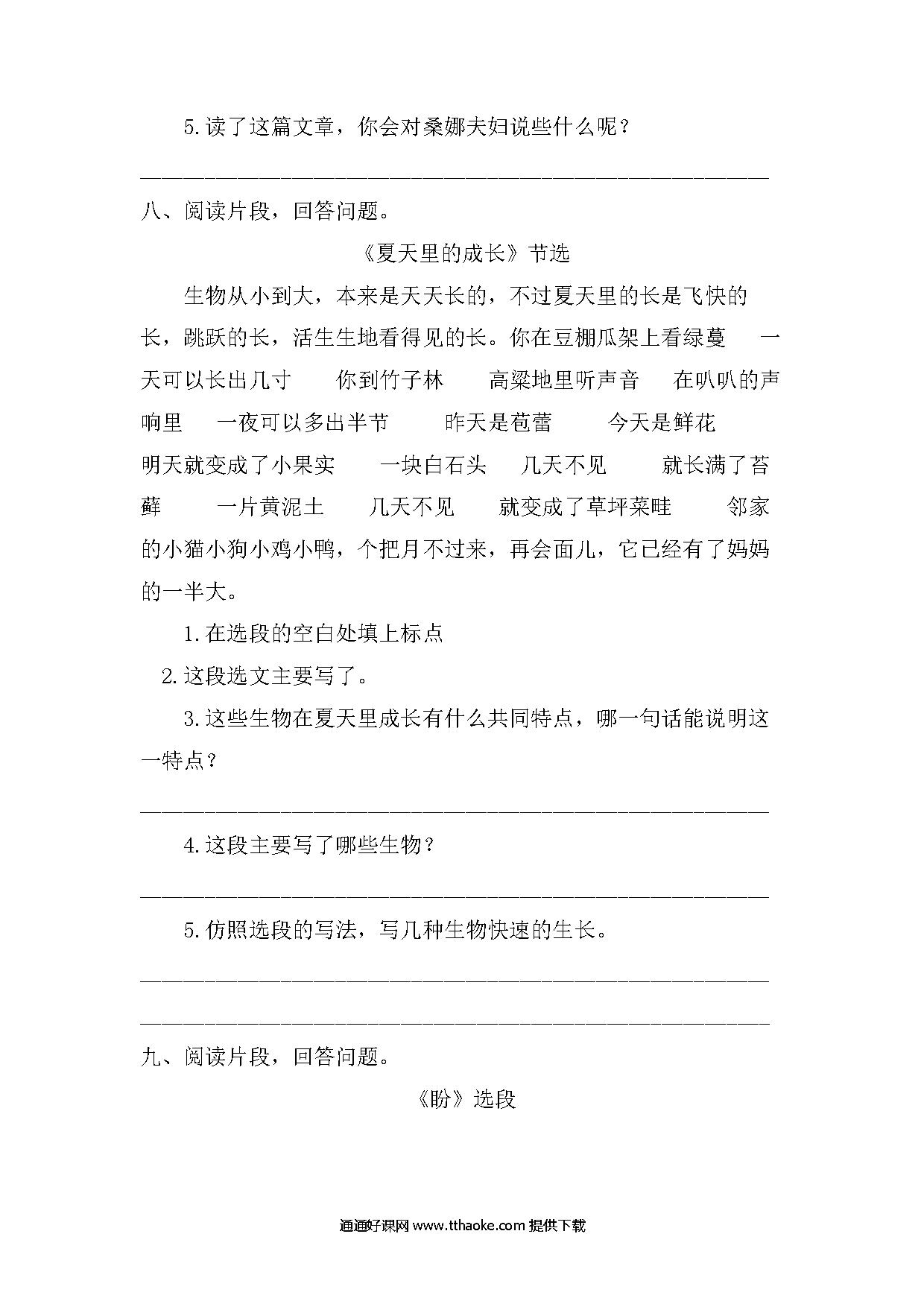 2022年部编版六年级语文上册阅读理解训练题八则附答案(可下载打印)