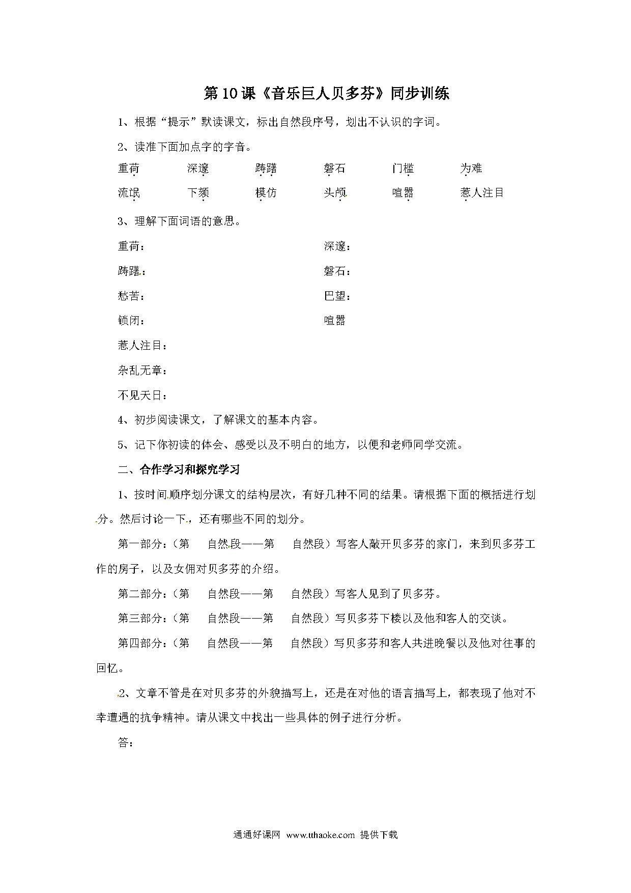 语文:第10课《音乐巨人贝多芬》同步训练(鲁教版七年级上).pdf (133.8KB)