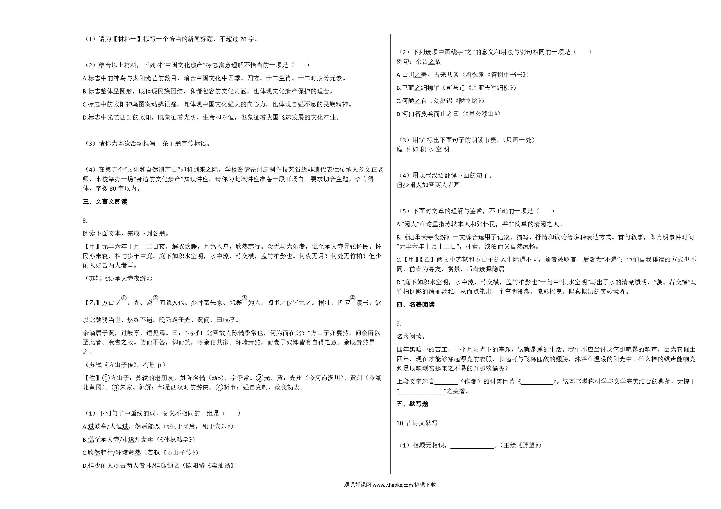湖南岳阳市2019-2020学年八年级语文上册期末试卷.pdf