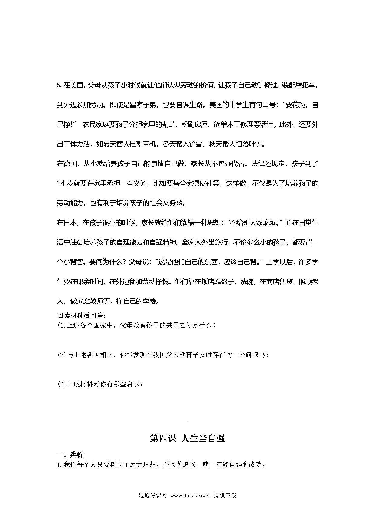 七年级政治下册第二单元问答题及答案.pdf