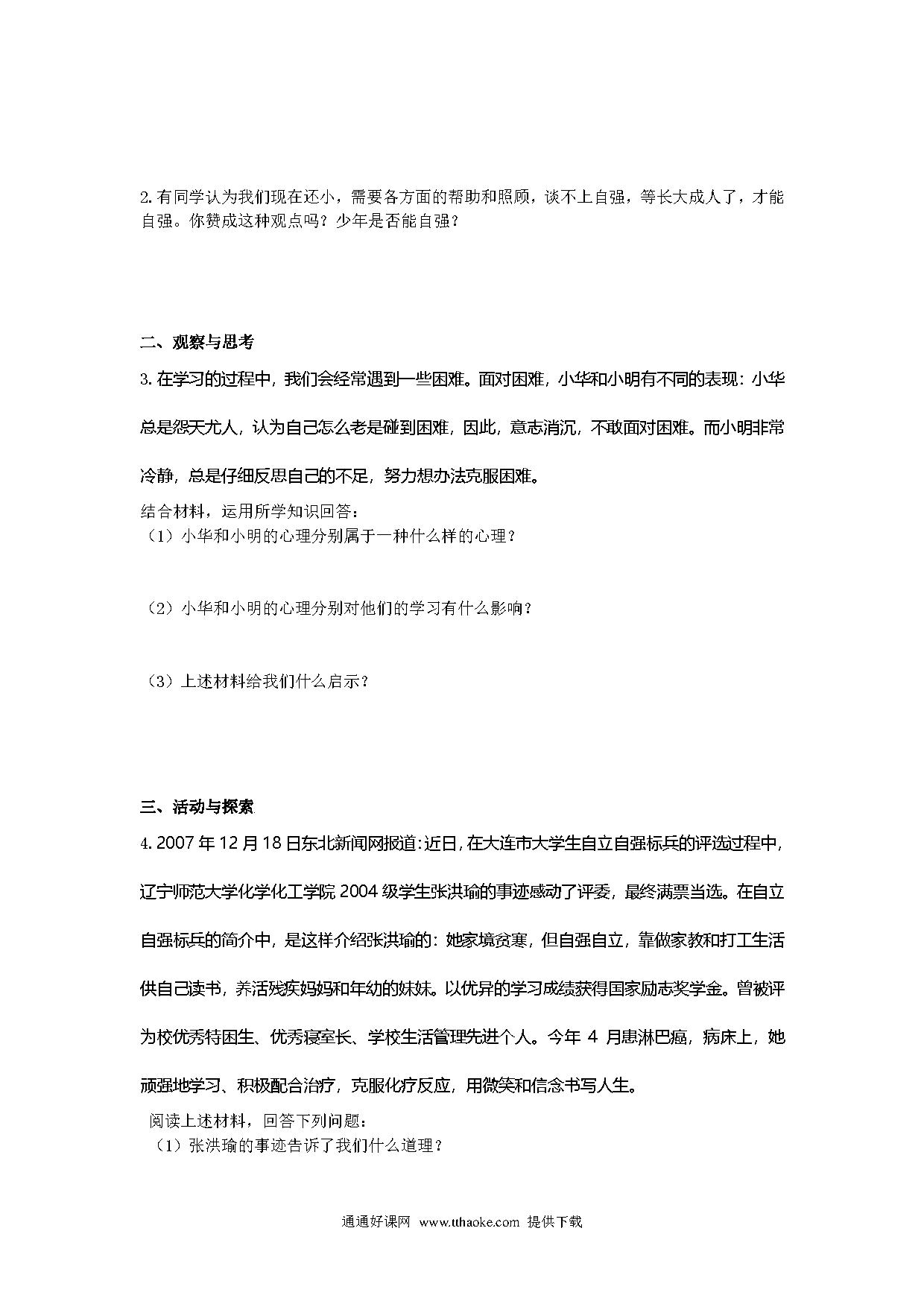七年级政治下册第二单元问答题及答案