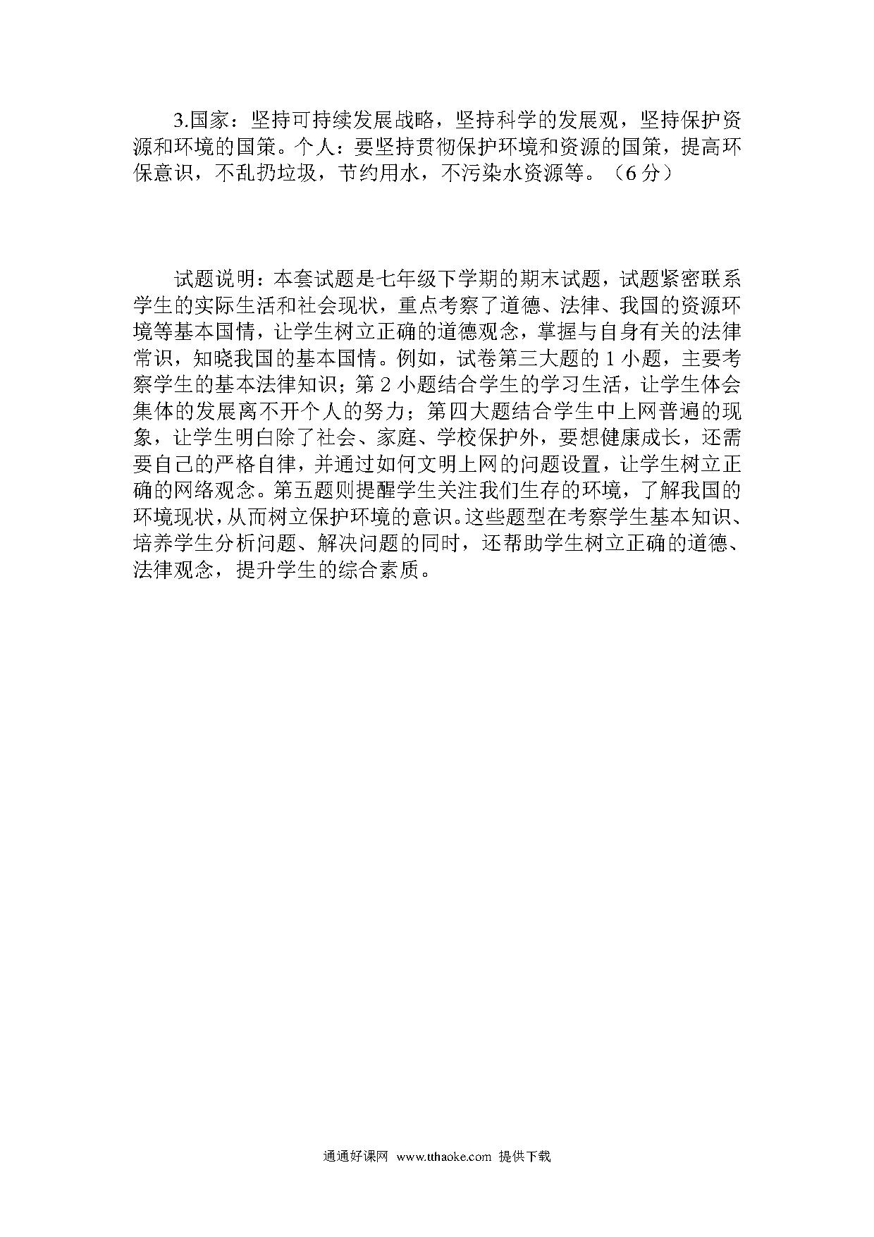 七年级思想品德第二学期期末试题有答案.pdf