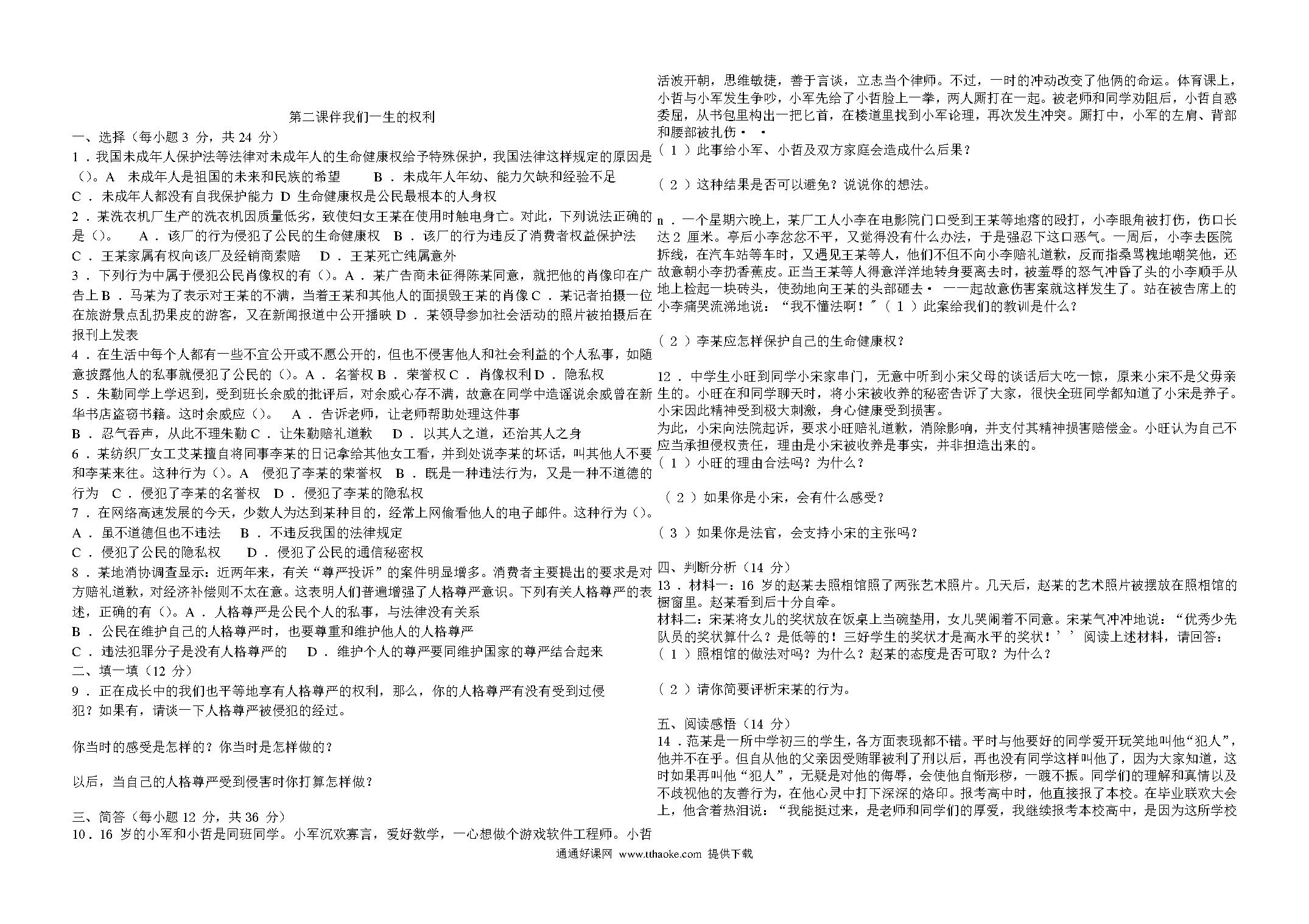 鲁教版八年级思想品德上册练习题集.pdf